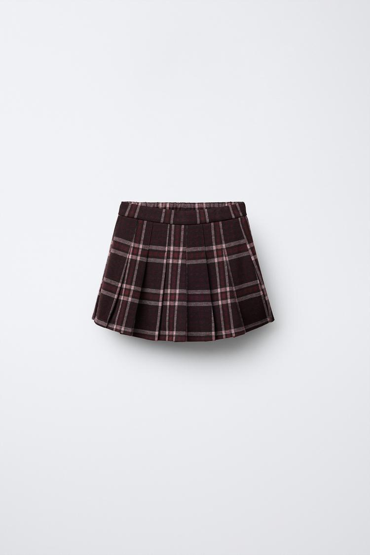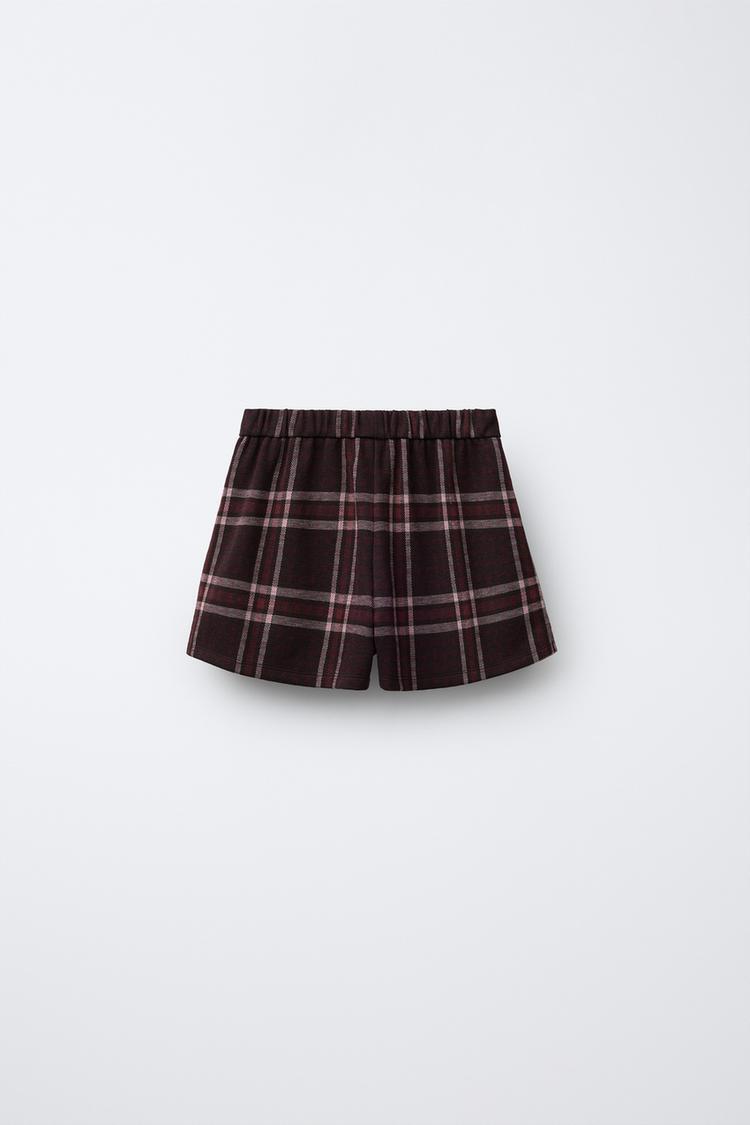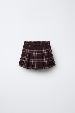 ZARA ЮБКА-ШОРТЫ В КЛЕТКУ СО СКЛАДКАМИ, КОРИЧНЕВЫЙ