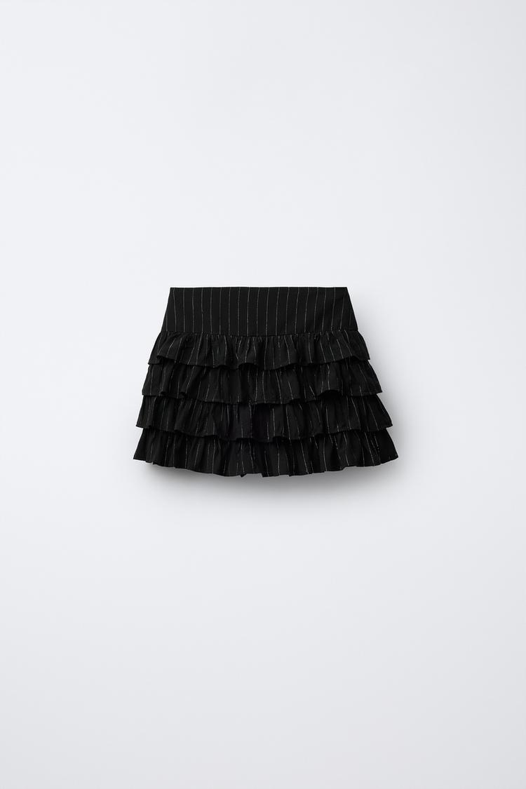 ZARA ЮБКА-ШОРТЫ В ПОЛОСКУ С БЛЕСТКАМИ, ЧЕРНЫЙ