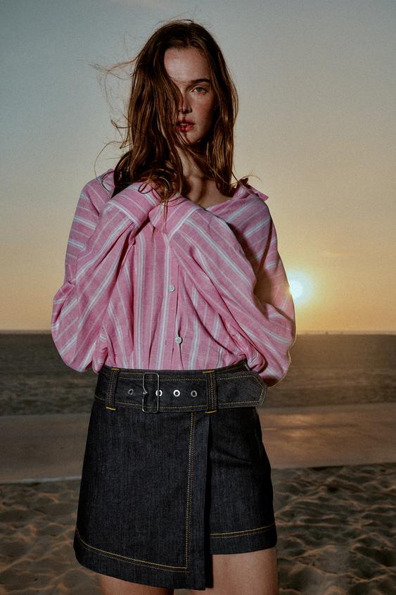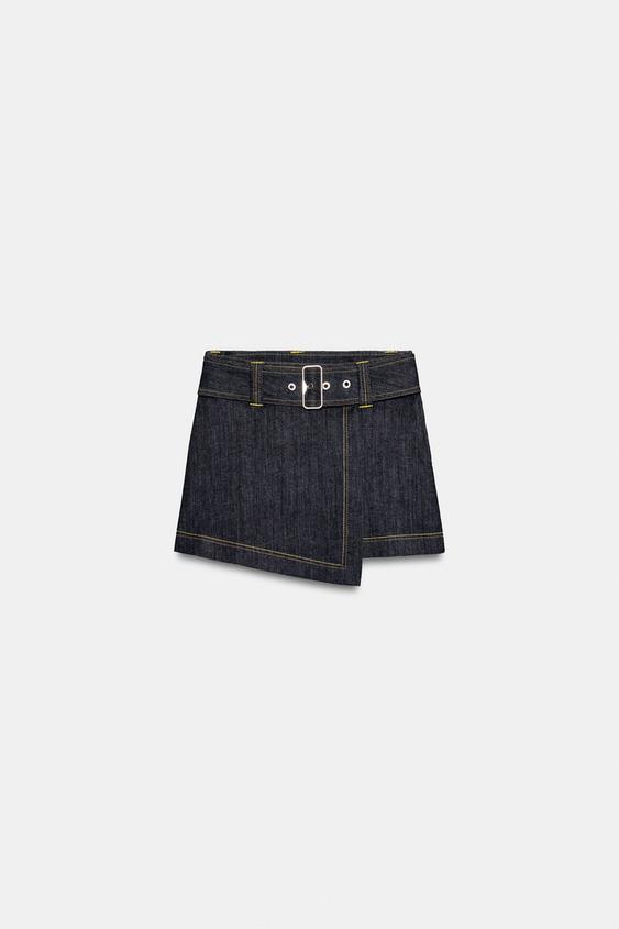 ZARA ЮБКА-ШОРТЫ Z1975 С ЗАПАХОМ И РЕМНЕМ, СИНИЙ
