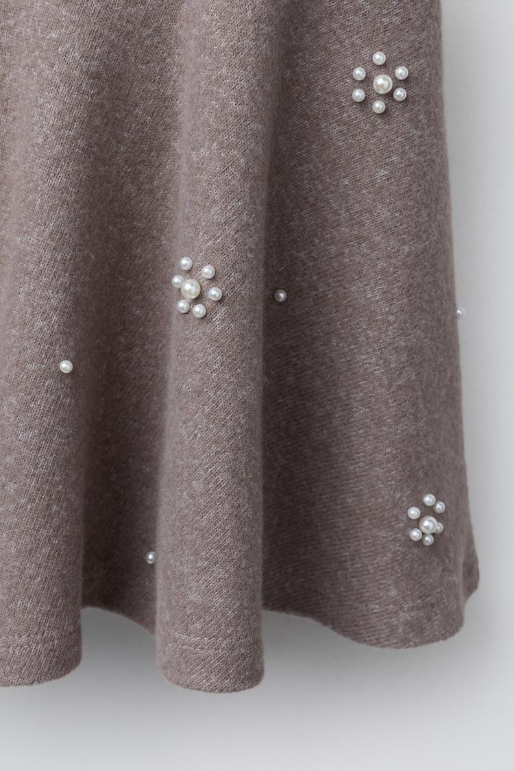 Юбка с эластичным поясом и жемчужным декором спереди.