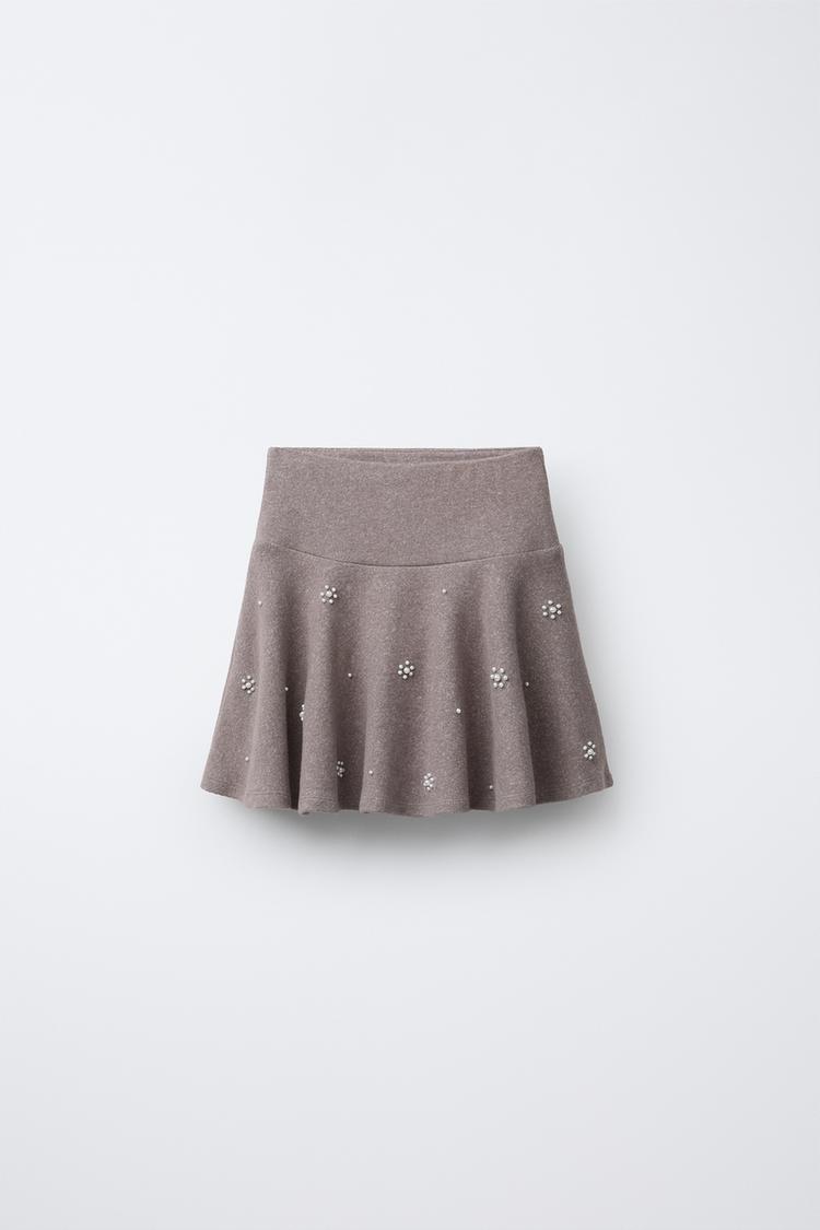 ZARA ЮБКА SOFT TOUCH С ЖЕМЧУГОМ, РЫЖЕВАТО-КОРИЧНЕВЫЙ