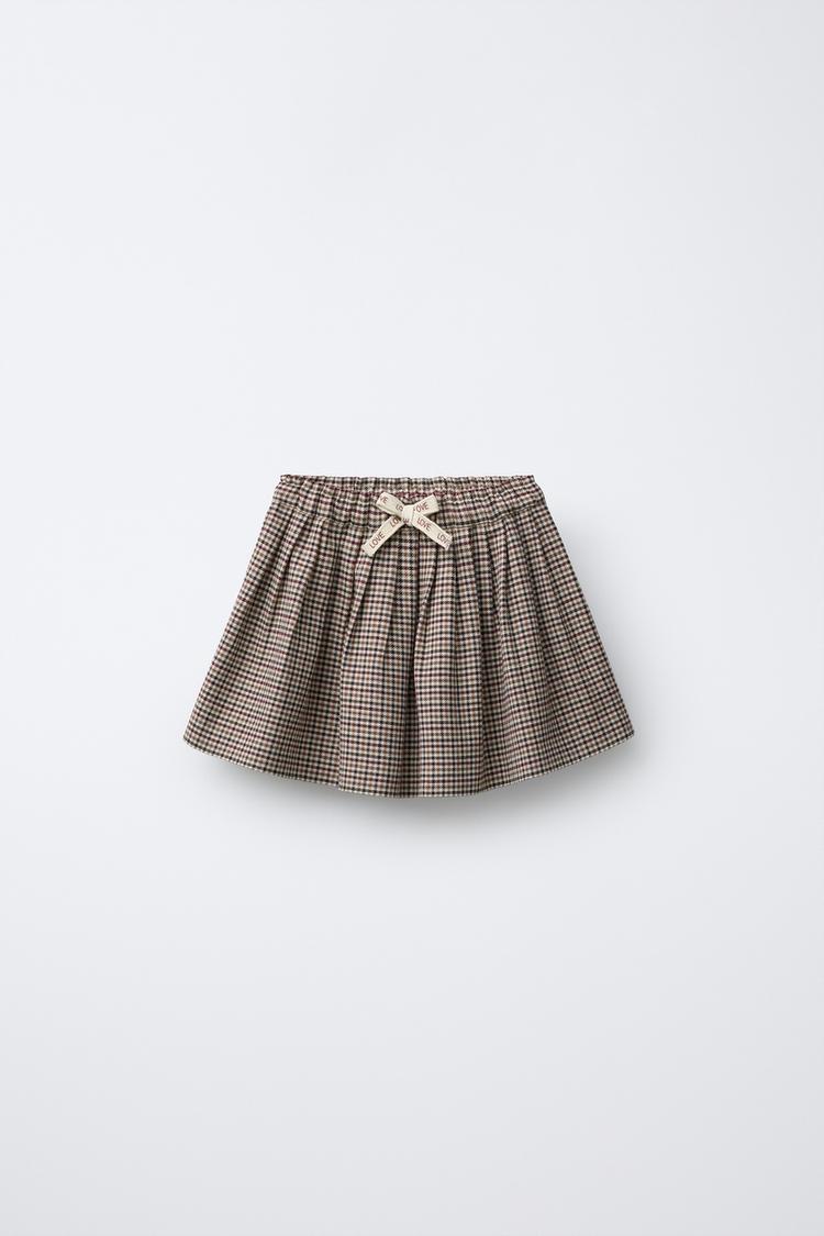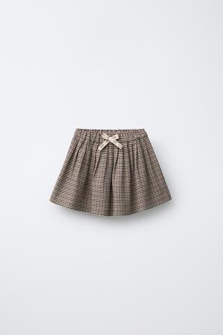 Юбка с эластичным поясом и бантом спереди. Принт в клетку.