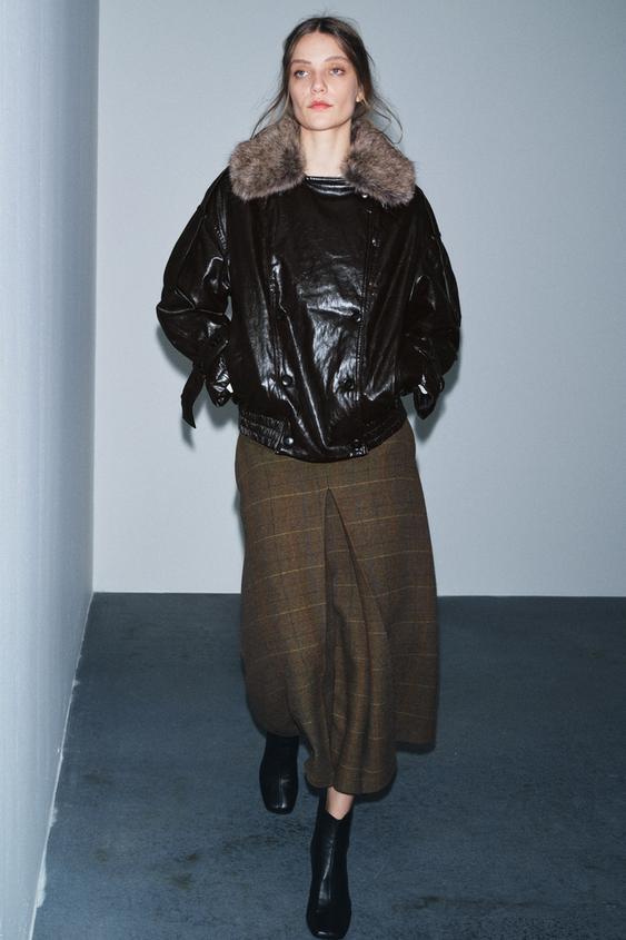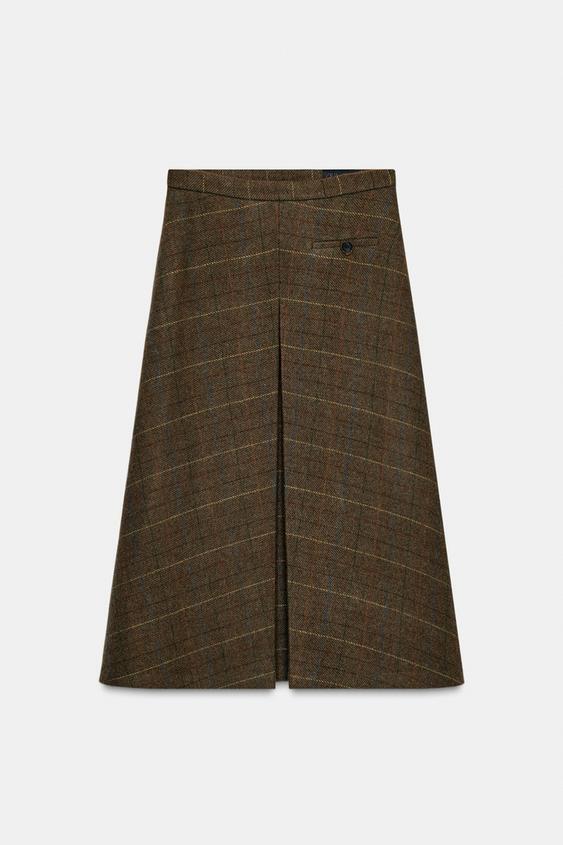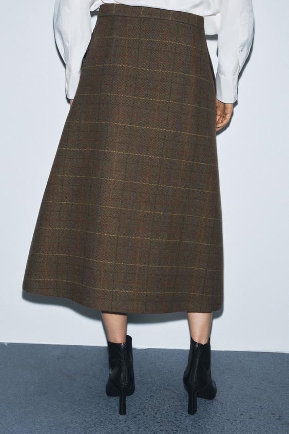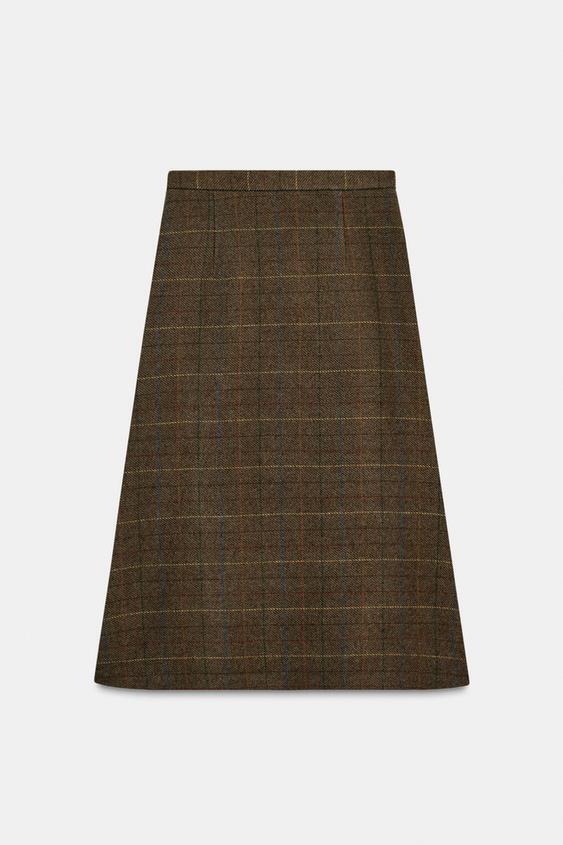 ZARA ЮБКА В КЛЕТКУ ИЗ ШЕРСТИ — ZW COLLECTION, ЦВЕТ ВЕРБЛЮЖЬЕЙ ШЕРСТИ