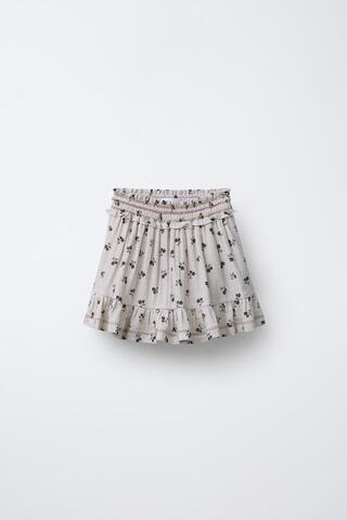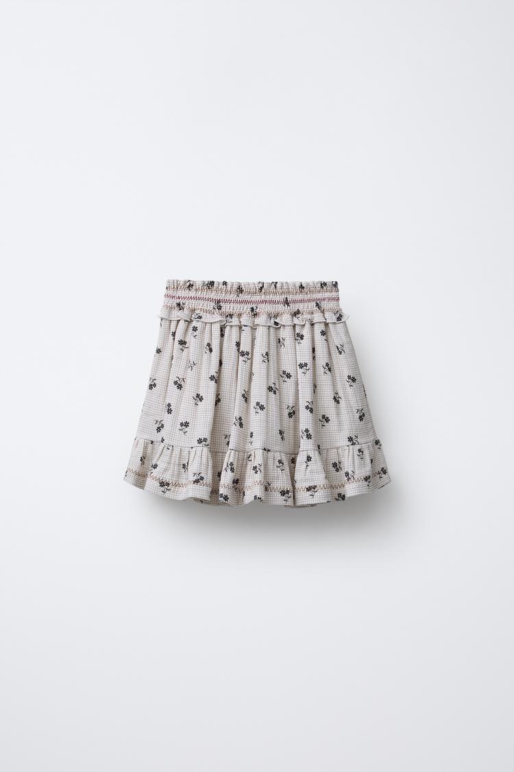 ZARA ЮБКА В КЛЕТКУ С ЦВЕТОЧНЫМ ПРИНТОМ, ЭКРЮ/ЧЕРНЫЙ