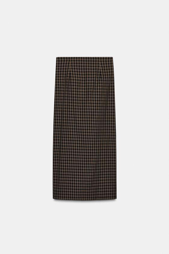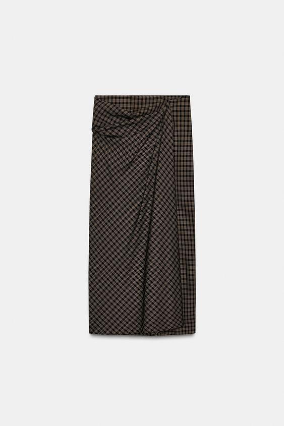 ZARA ЮБКА В КЛЕТКУ СО СБОРКАМИ — ZW COLLECTION, ЧЕРНЫЙ
