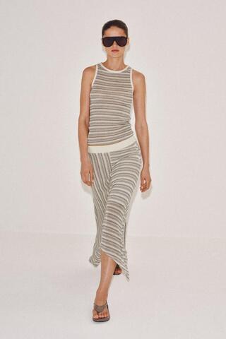 ZARA ЮБКА В ПОЛОСКУ АСИММЕТРИЧНОГО КРОЯ, СИНИЙ
