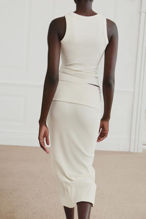 ZARA ЮБКА В РУБЧИК В СТИЛЕ РУСТИК, ЭКРЮ