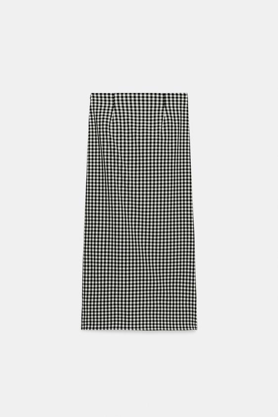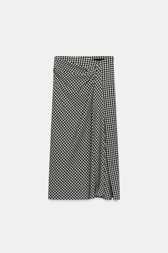ZARA ЮБКА ВИШИ В КЛЕТКУ СО СБОРКАМИ, ЧЕРНЫЙ/БЕЛЫЙ