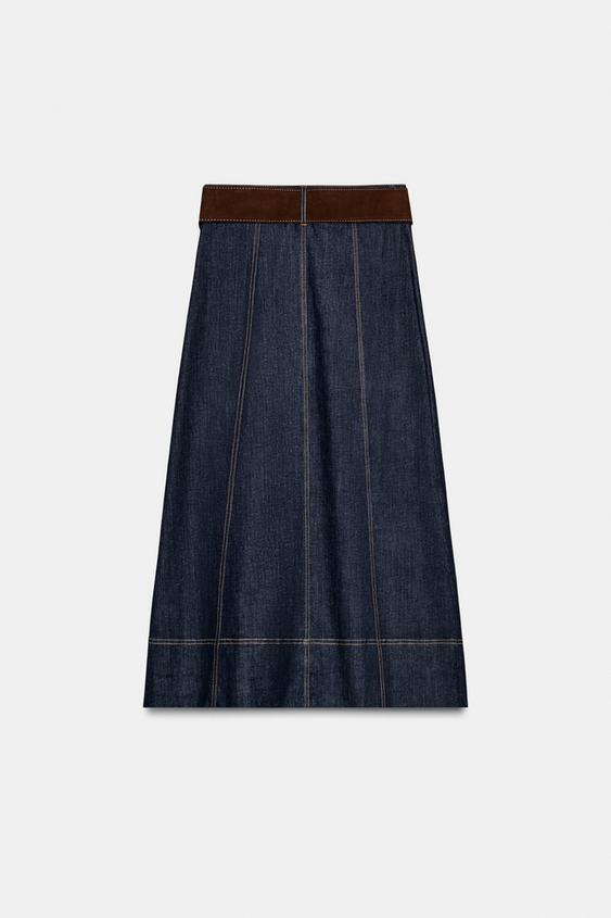 ZARA ЮБКА Z1975 МИДИ ДЕНИМ С ЗАПАХОМ И ПОЯСОМ, СИНИЙ