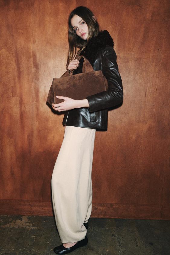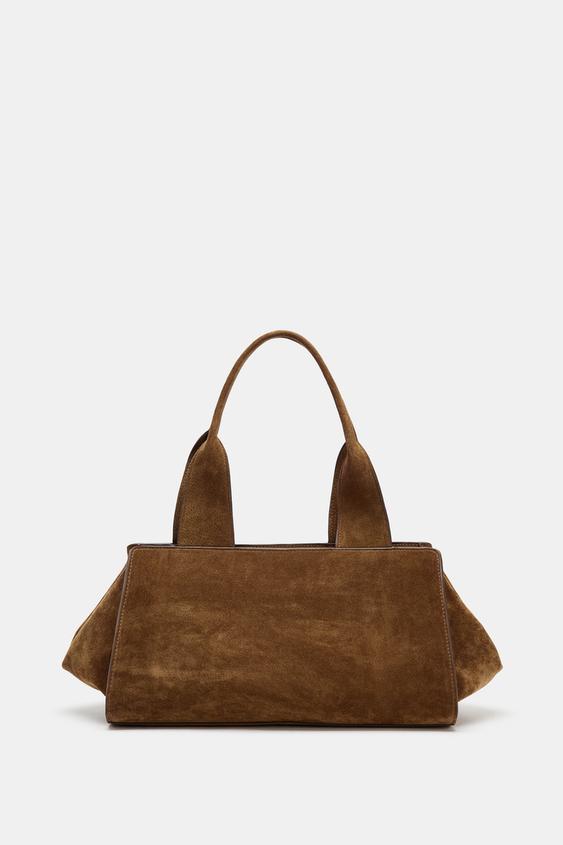 ZARA ЗАМШЕВАЯ СУМКА С ДВОЙНОЙ РУЧКОЙ, КОНЬЯЧНО-КОРИЧНЕВЫЙ