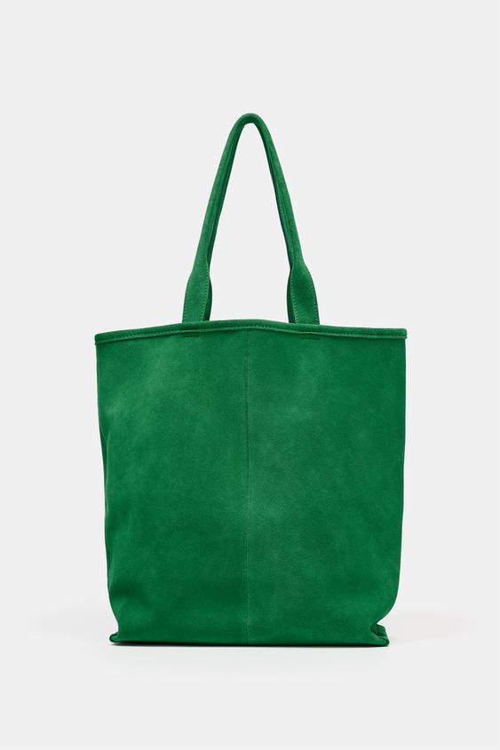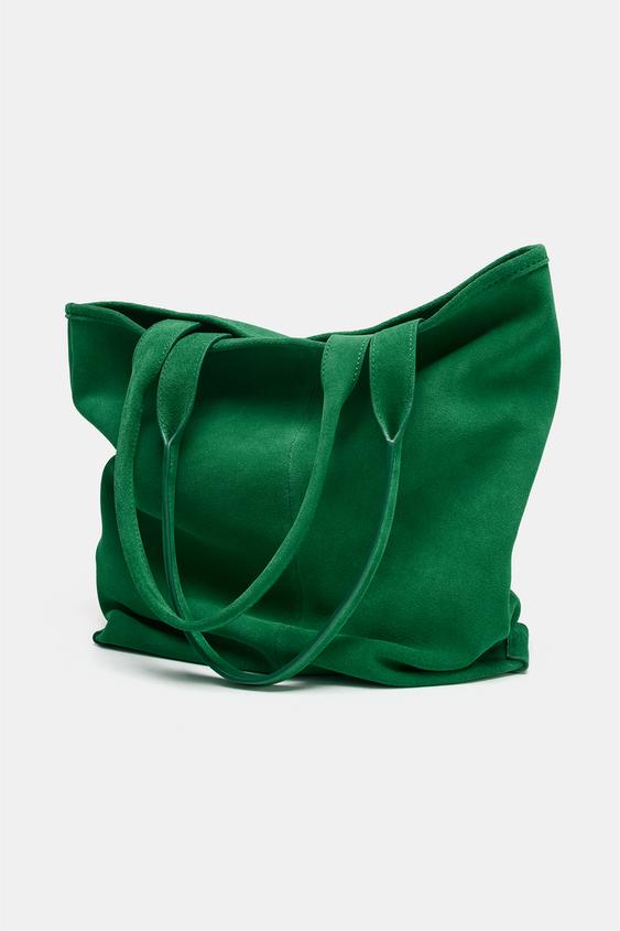 ZARA ЗАМШЕВАЯ СУМКА-ШОПЕР. ЗЕЛЕНЫЙ