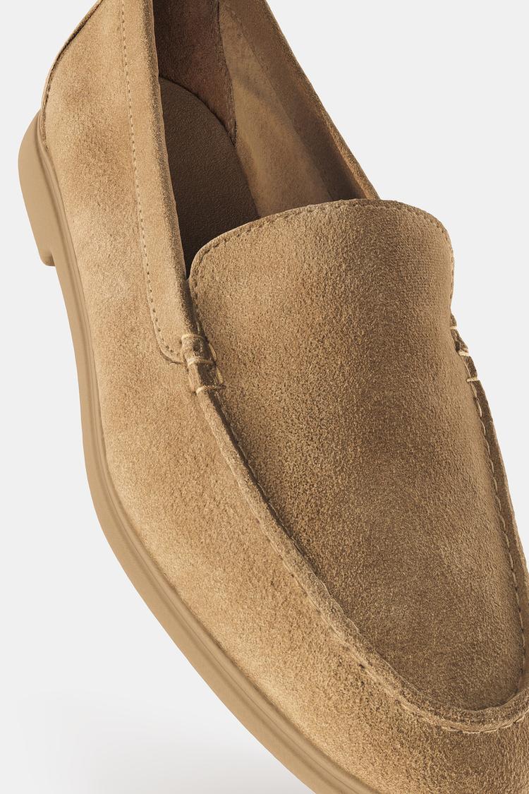 ZARA ЗАМШЕВЫЕ ЛОФЕРЫ НА ПЛОСКОЙ ПОДОШВЕ, ПЕСОЧНО-КОРИЧНЕВЫЙ