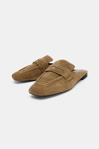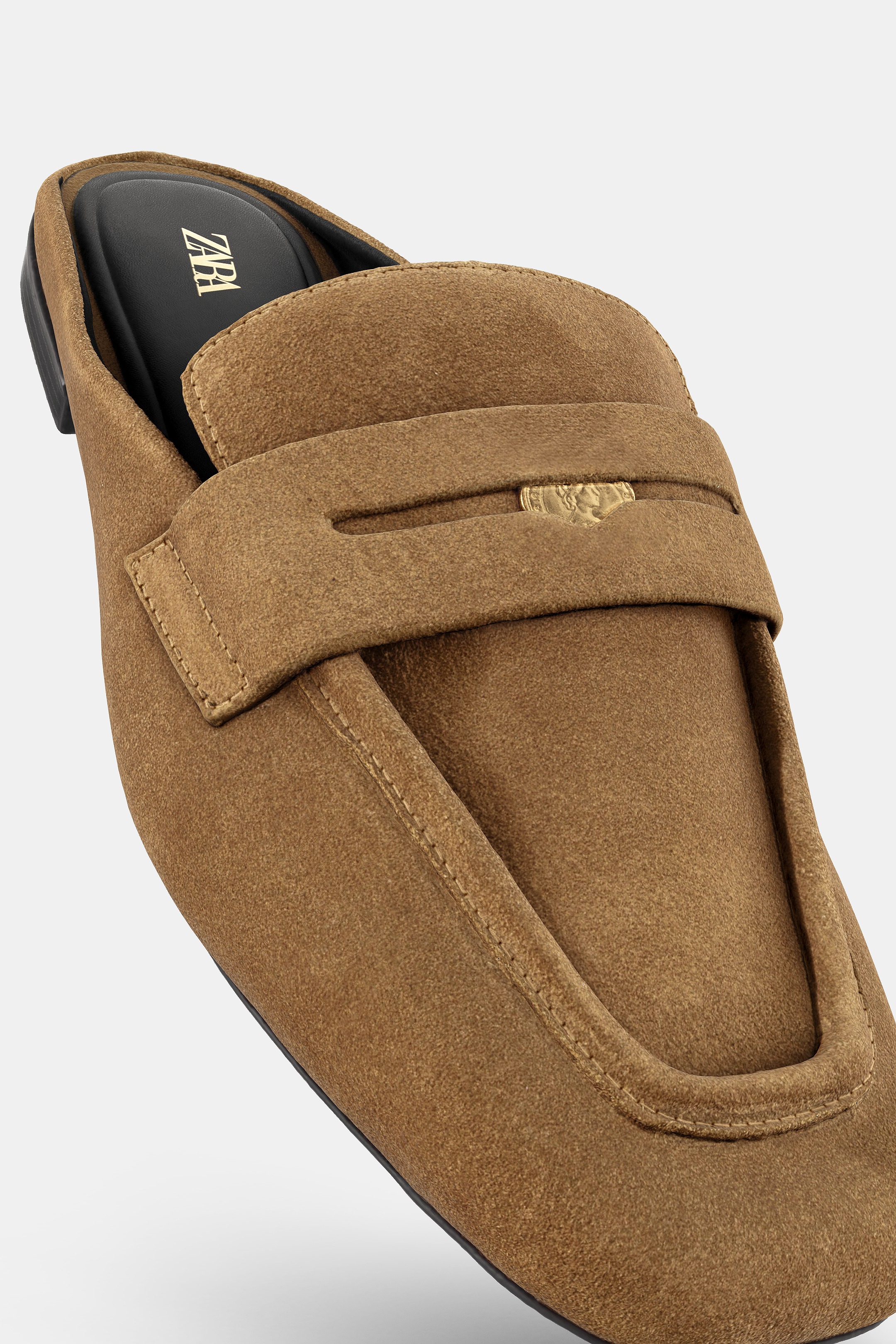 ZARA ЗАМШЕВЫЕ МЮЛИ-ЛОФЕРЫ, ТЕМНЫЙ РЫЖЕВАТО-КОРИЧНЕВЫЙ