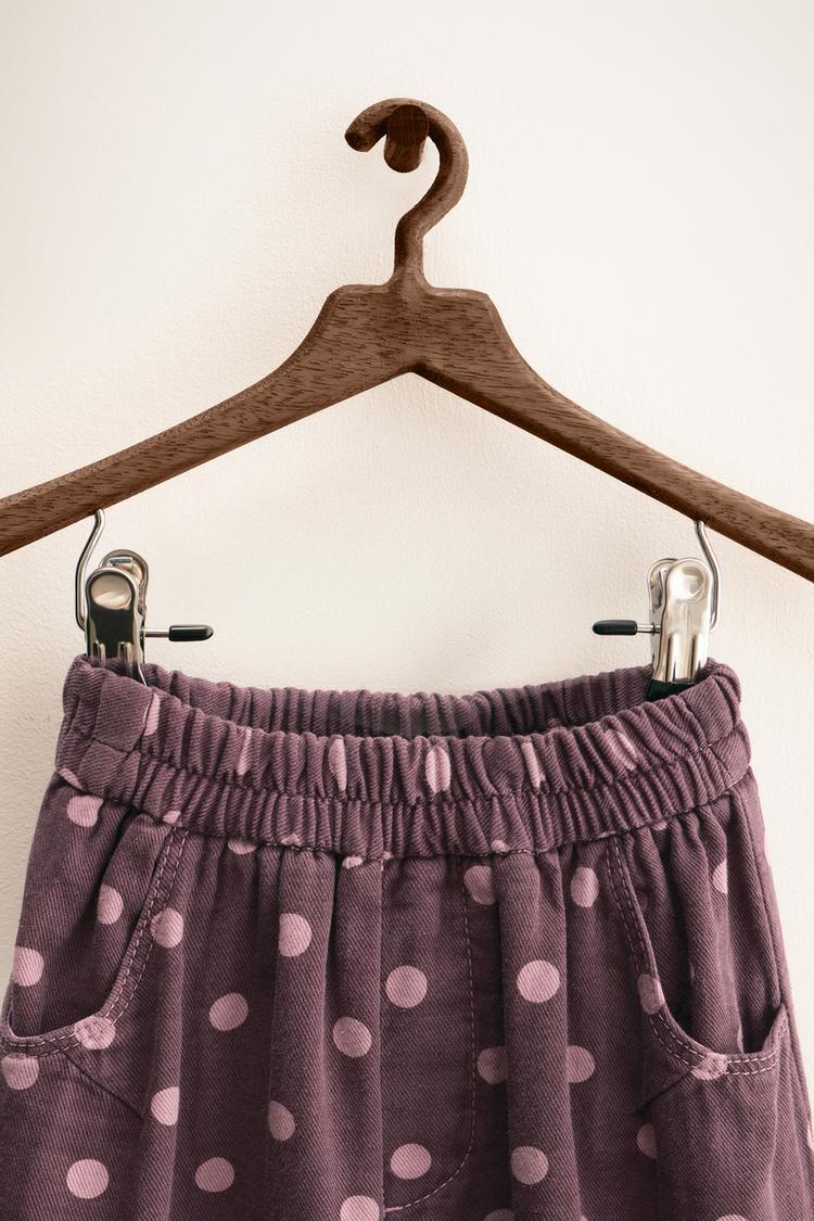ZARA ZARA TIMELESS - БРЮКИ-БАНАНЫ В ГОРОШЕК, БАКЛАЖАНОВЫЙ