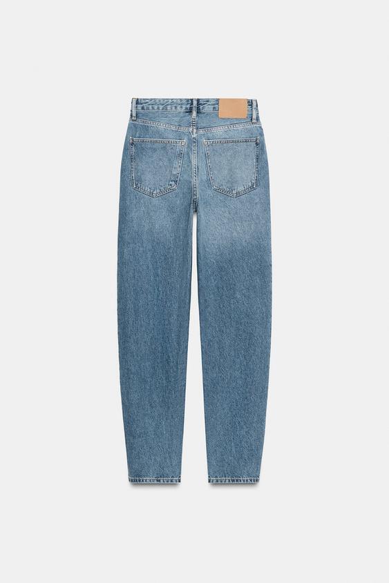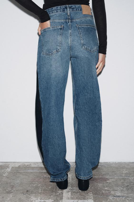 ZARA ЗАУЖЕННЫЕ ДЖИНСЫ С ПЭЧВОРКОМ — ZW COLLECTION, СИНИЙ