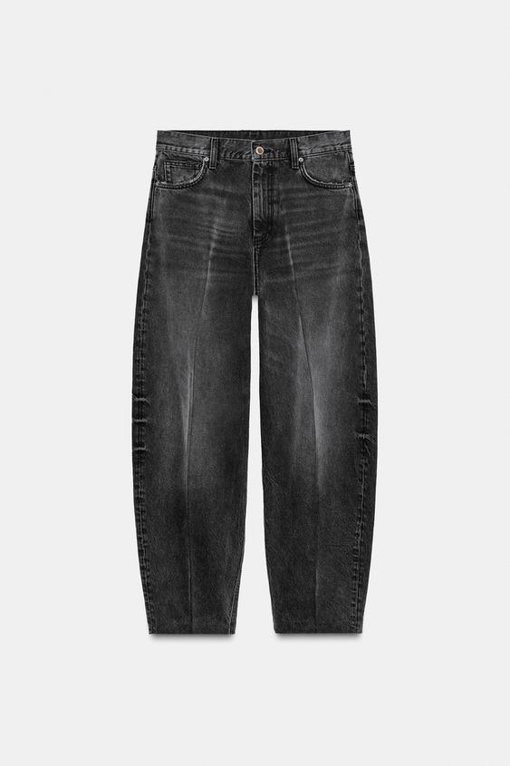 ZARA ЗАУЖЕННЫЕ ДЖИНСЫ С ВЫСОКОЙ ПОСАДКОЙ — ZW COLLECTION, ЧЕРНЫЙ