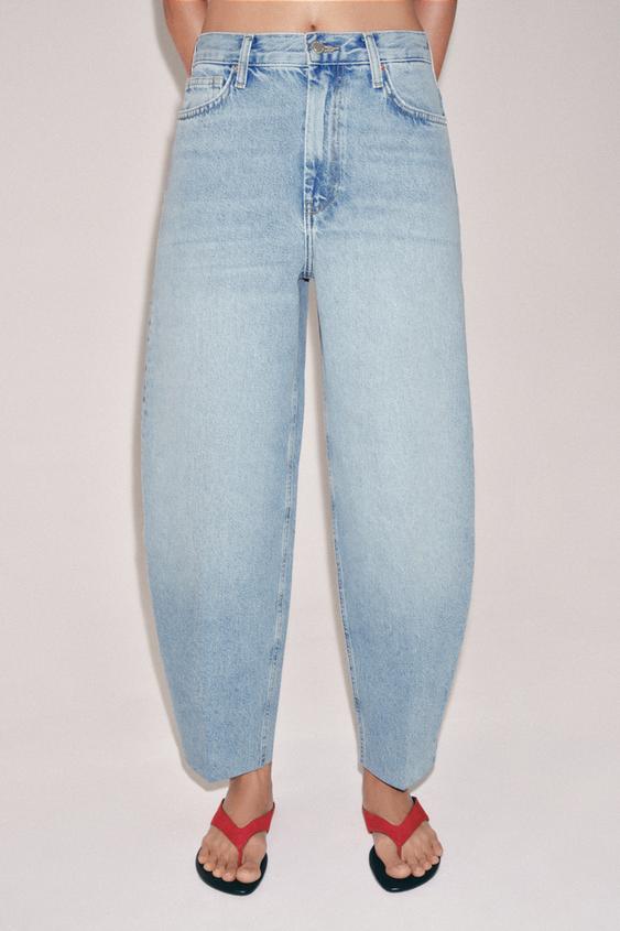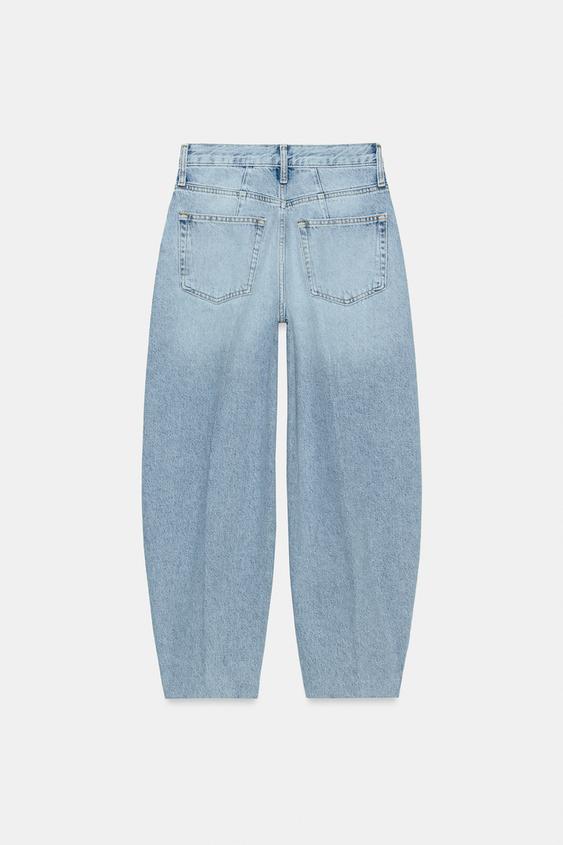 ZARA ЗАУЖЕННЫЕ ДЖИНСЫ С ВЫСОКОЙ ПОСАДКОЙ — ZW COLLECTION, ГОЛУБОЙ