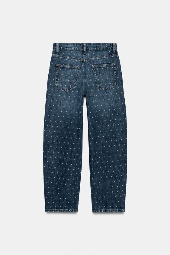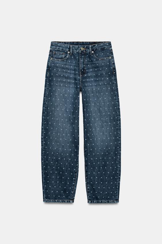ZARA ЗАУЖЕННЫЕ ДЖИНСЫ СО СРЕДНЕЙ ПОСАДКОЙ И ПРИНТОМ В ГОРОШЕК — ZW COLLECTION, СИНИЙ