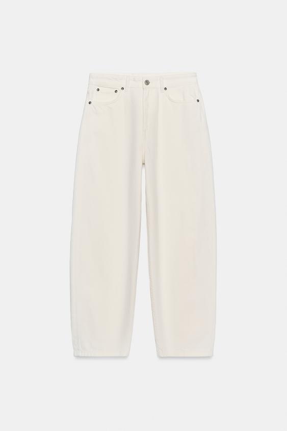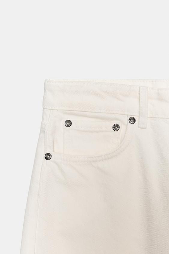 ZARA ЗАУЖЕННЫЕ ДЖИНСЫ СО СРЕДНЕЙ ПОСАДКОЙ — ZW COLLECTION, БЕЛЫЙ