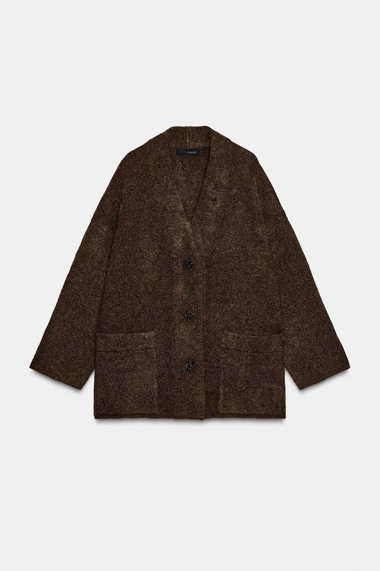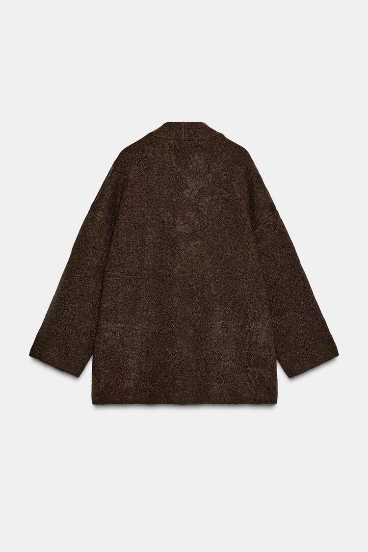 ZARA ЖАКЕТ ИЗ ТРИКОТАЖА С БЛЕСТЯЩЕЙ НИТЬЮ, КОРИЧНЕВЫЙ