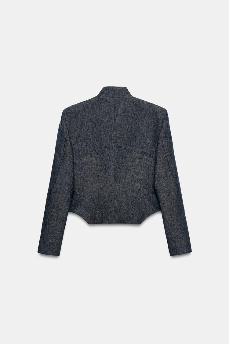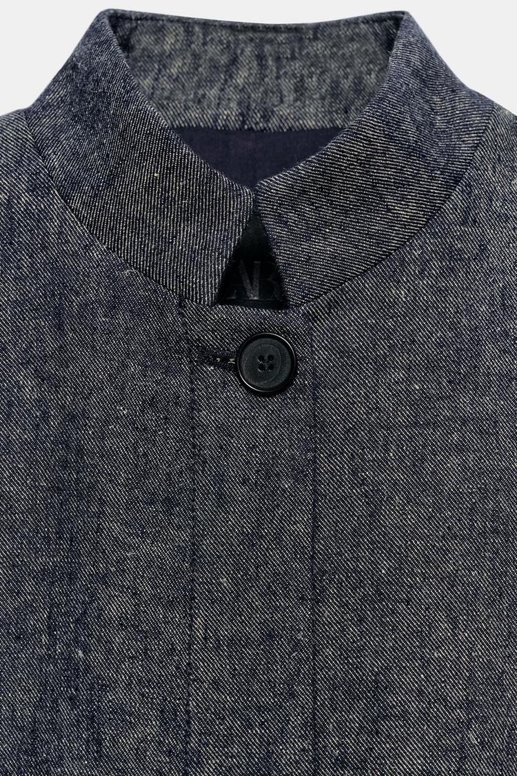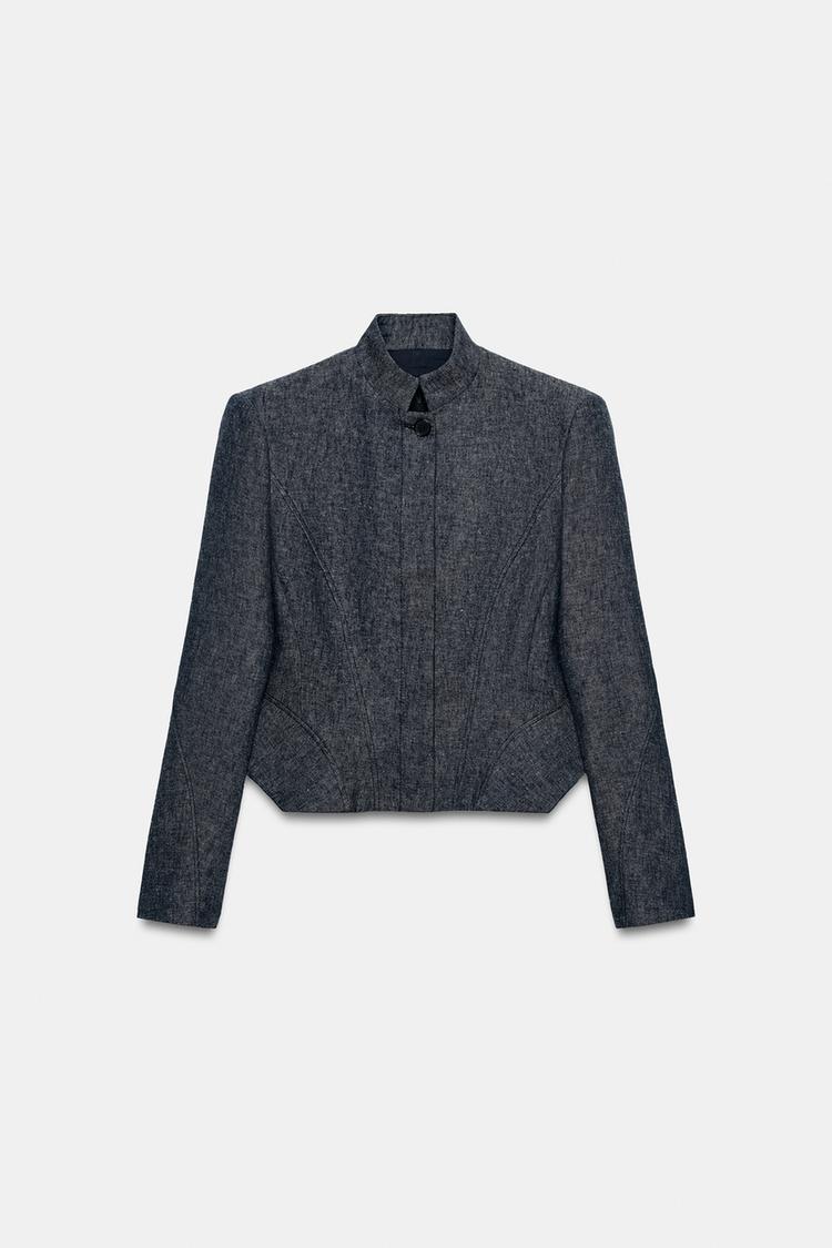 ZARA ЖАКЕТ С БАСКОЙ ИЗ СМЕСОВОГО ЛЬНА — ZW COLLECTION, БЕЖЕВЫЙ/ТЕМНО-СИНИЙ