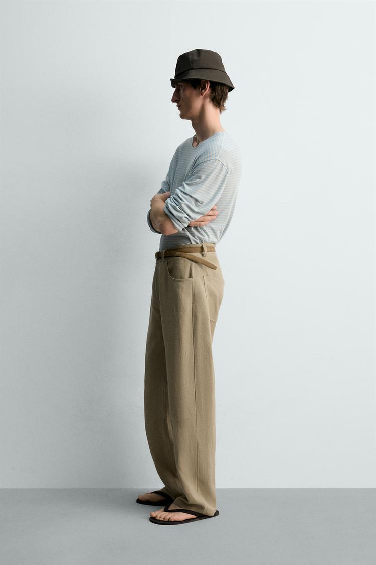 Футболка свободного кроя из смесового хлопка и льна. Широкий круглый вырез и длинные рукава.