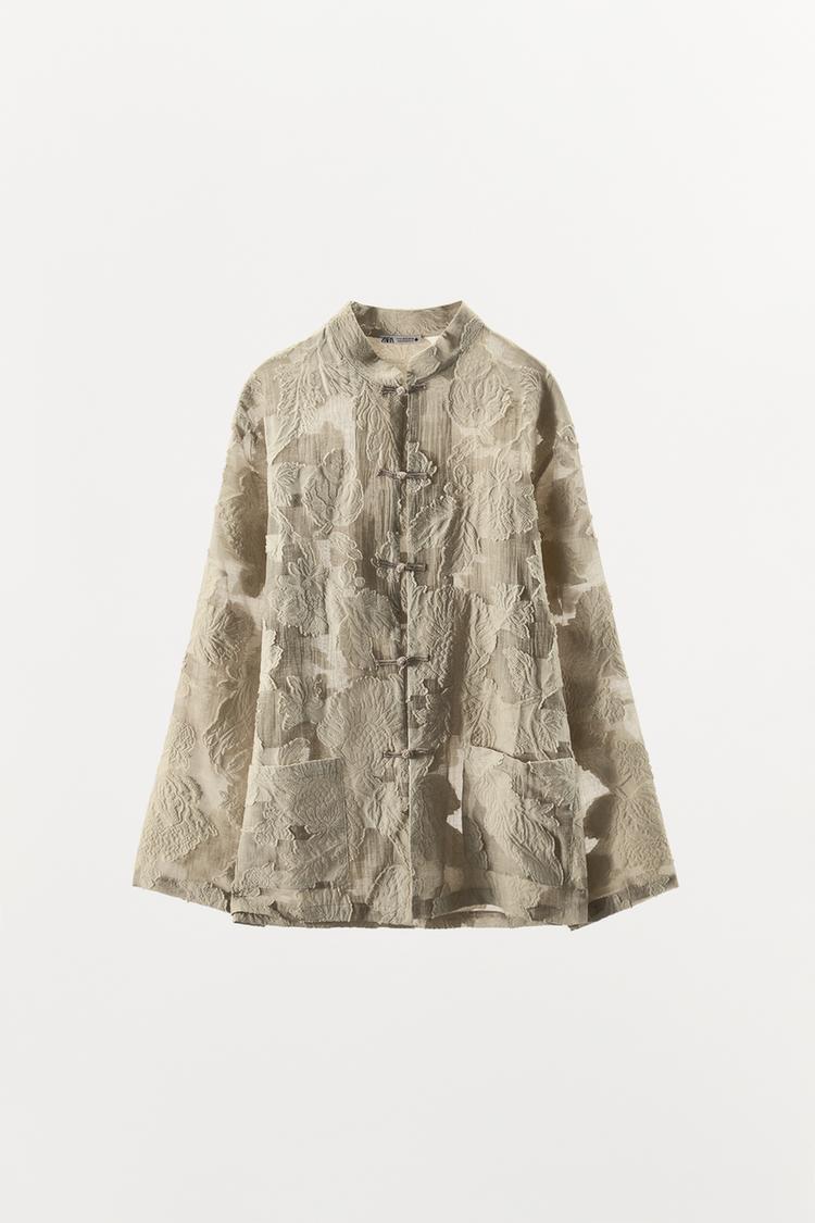 ZARA ЖАККАРДОВОЕ КИМОНО С ЦВЕТАМИ LIMITED EDITION, РЫЖЕВАТО-КОПИЧНЕВЫЙ