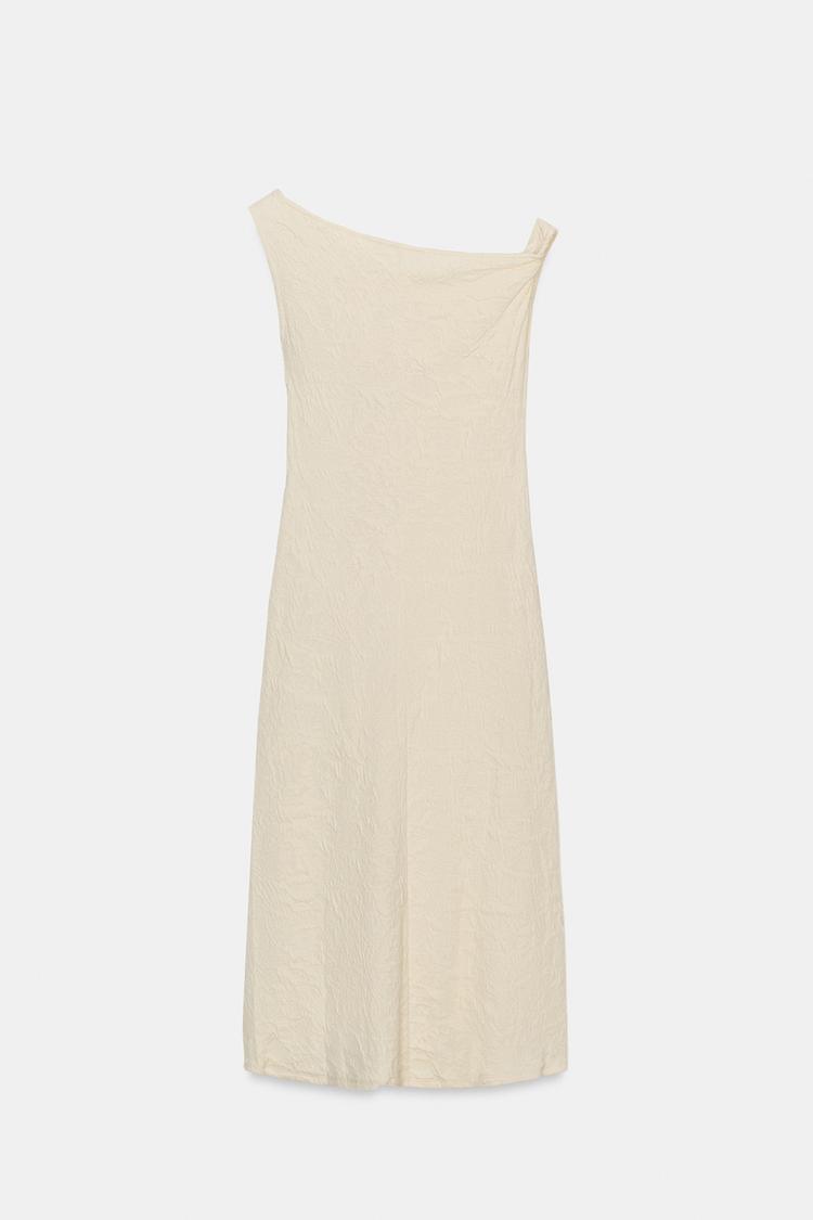 ZARA ЖАККАРДОВОЕ ПЛАТЬЕ СО СКЛАДКАМИ, ЭКРЮ