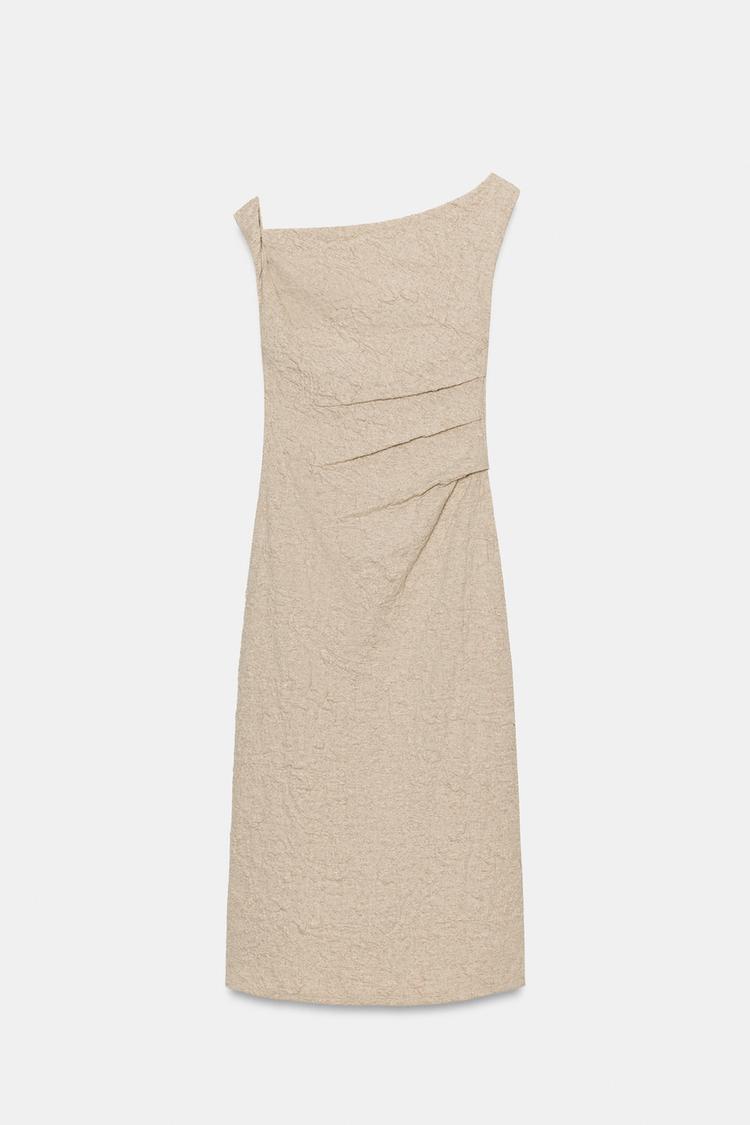 ZARA ЖАККАРДОВОЕ ПЛАТЬЕ СО СКЛАДКАМИ, РОЗОВАТО-КОРИЧНЕВЫЙ