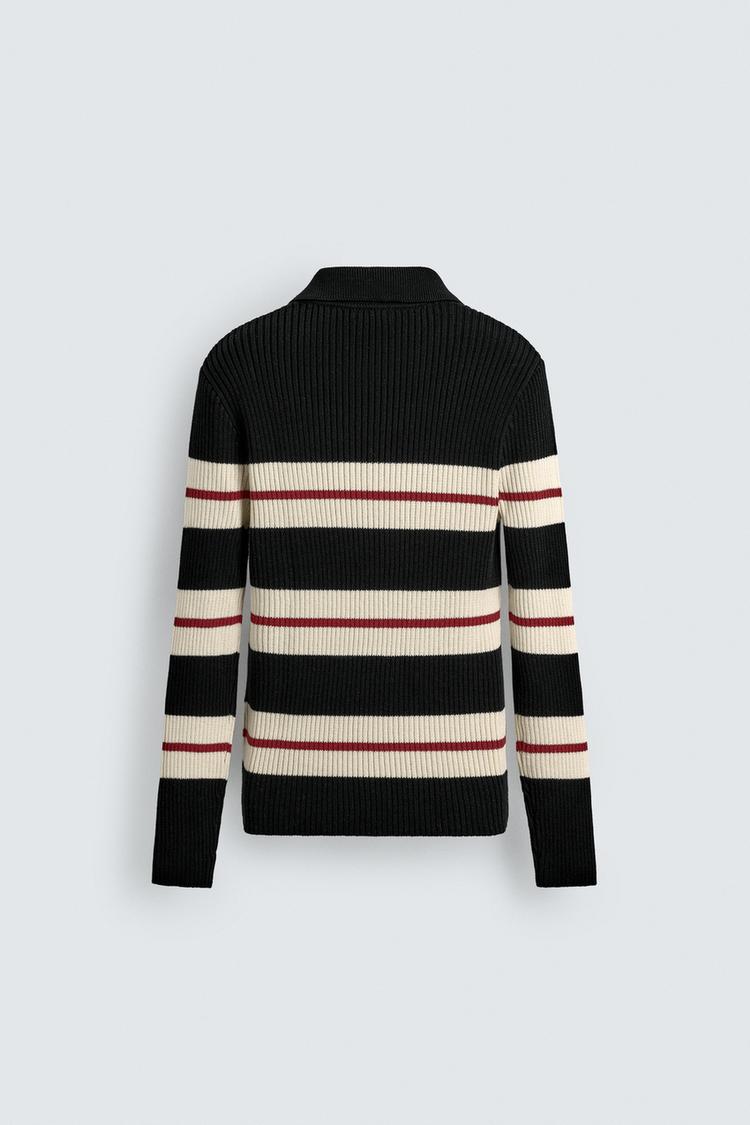 ZARA ЖАККАРДОВОЕ ПОЛО В ПОЛОСКУ, ЧЕРНЫЙ