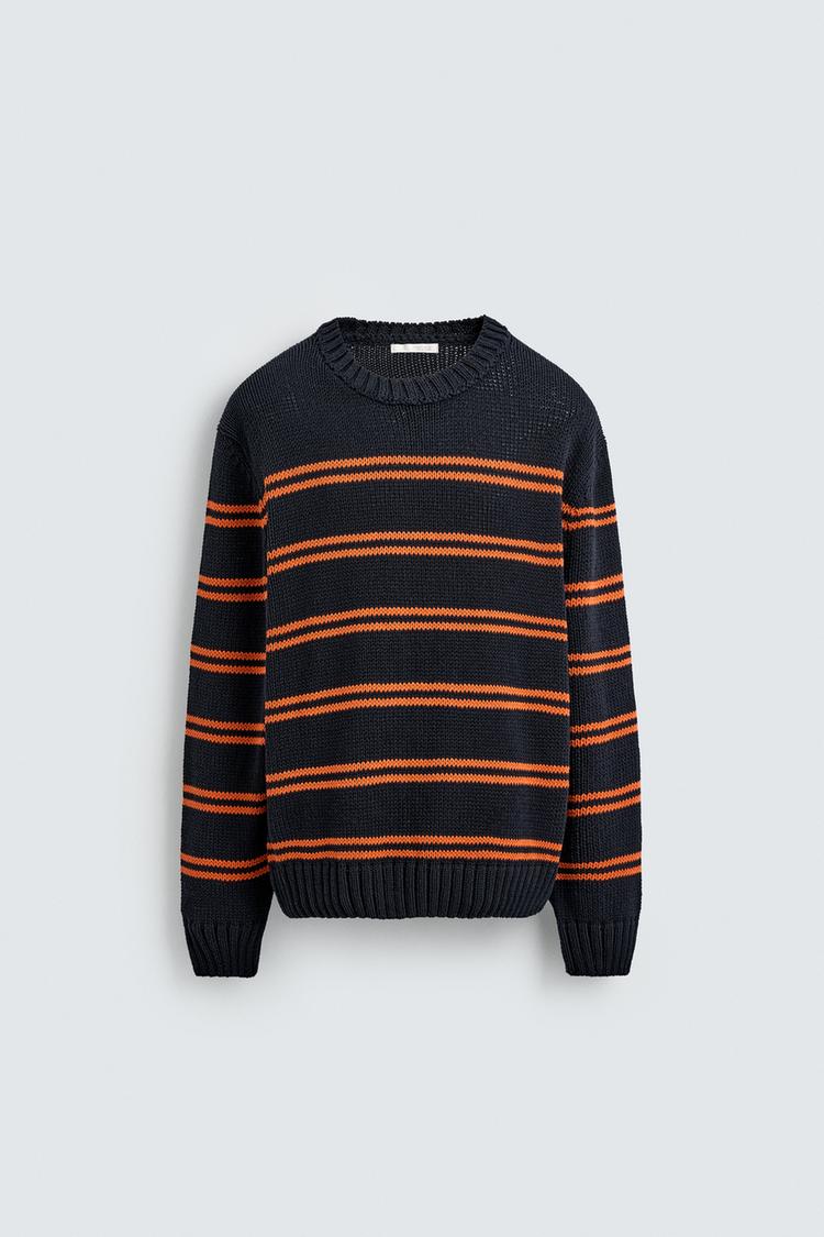 ZARA ЖАККАРДОВЫЙ ДЖЕМПЕР В ПОЛОСКУ, МОРСКОЙ СИНИЙ