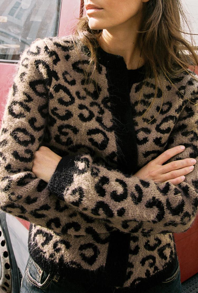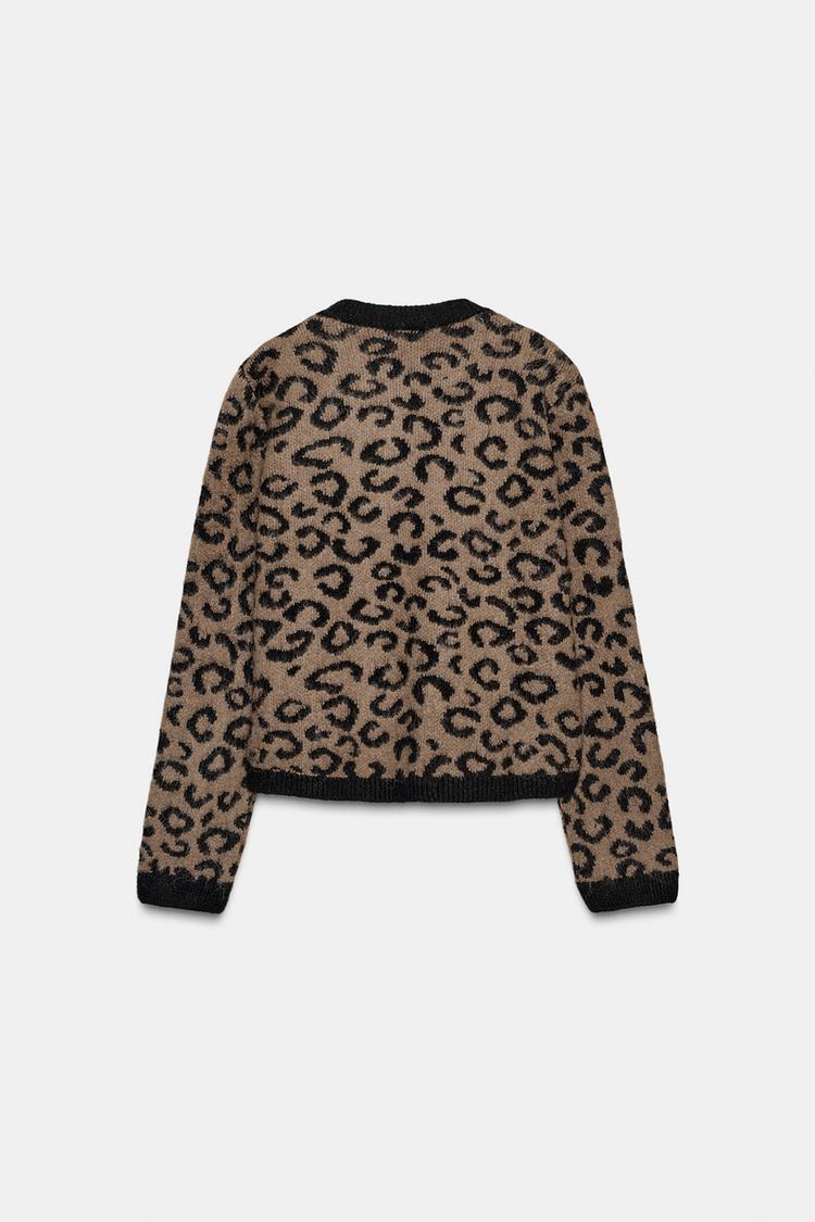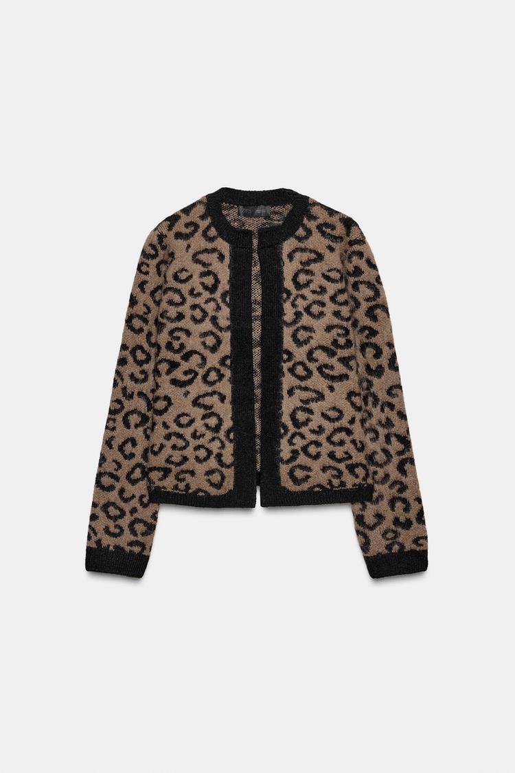 ZARА ЖАККАРДОВЫЙ КАРДИГАН С АНИМАЛИСТИЧЕСКИМ УЗОРОМ, ЛЕОПАРДОВЫЙ