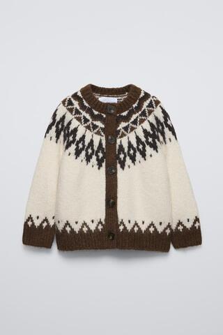 ZARA ЖАККАРДОВЫЙ КАРДИГАН, СВЕТЛО-КОРИЧНЕВЫЙ