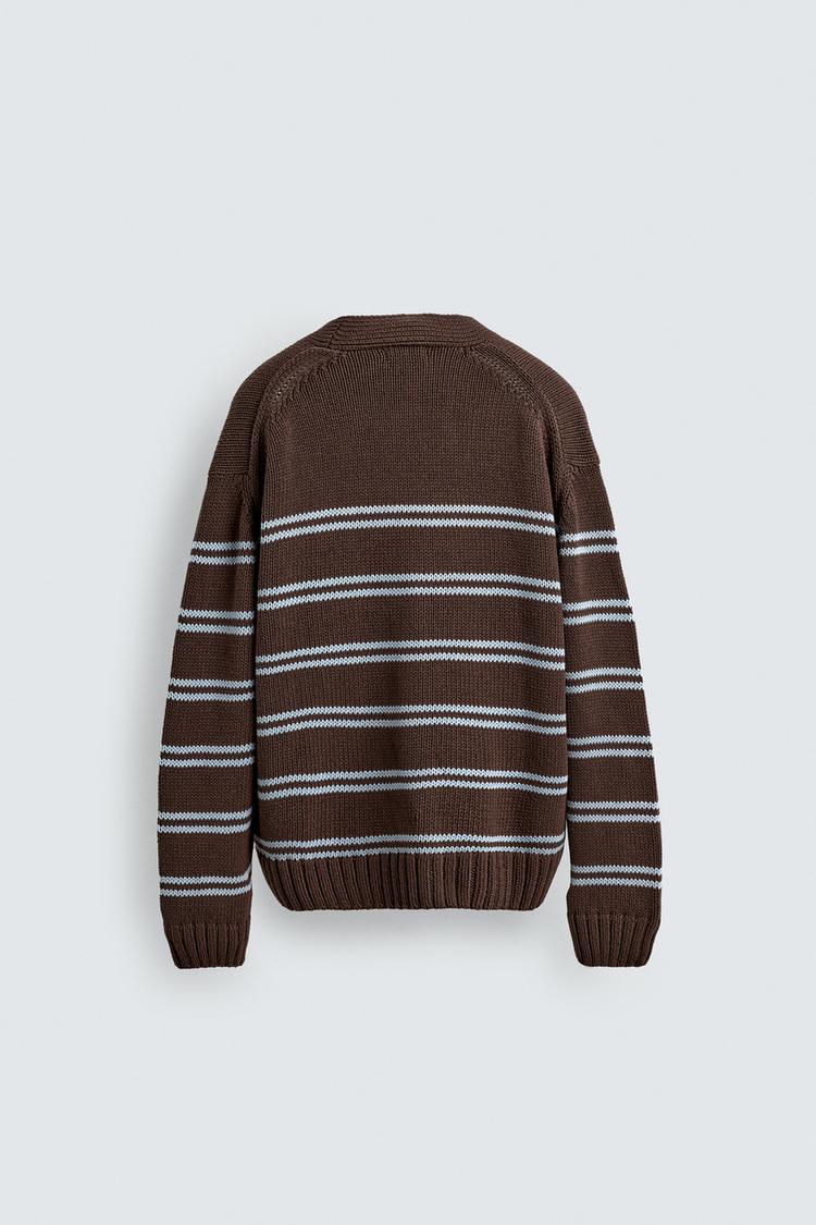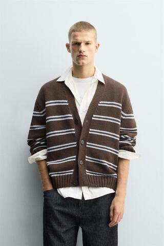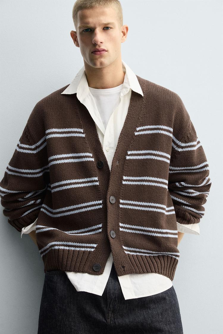 ZARA ЖАККАРДОВЫЙ КАРДИГАН В ПОЛОСКУ, КОРИЧНЕВЫЙ