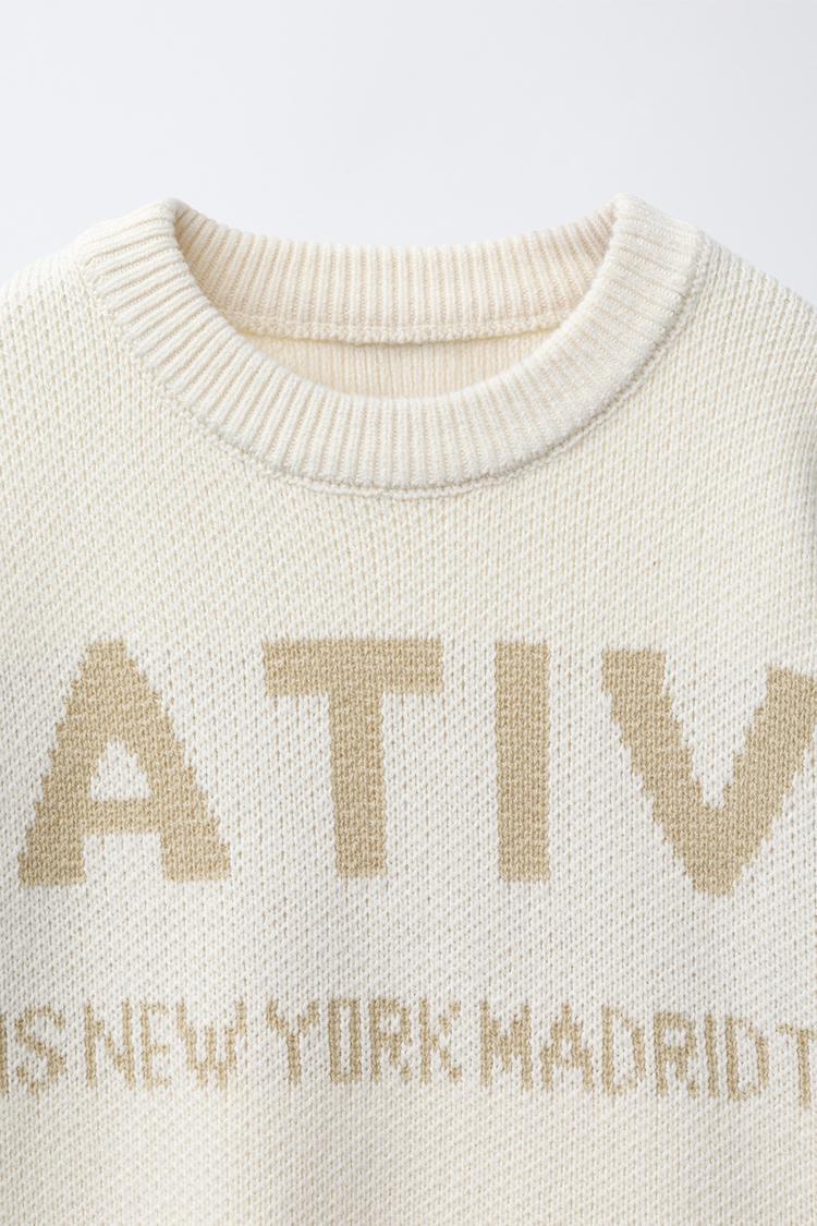 ZARA ЖАККАРДОВЫЙ СВИТЕР С НАДПИСЬЮ, ЭКРЮ/БЕЖЕВЫЙ