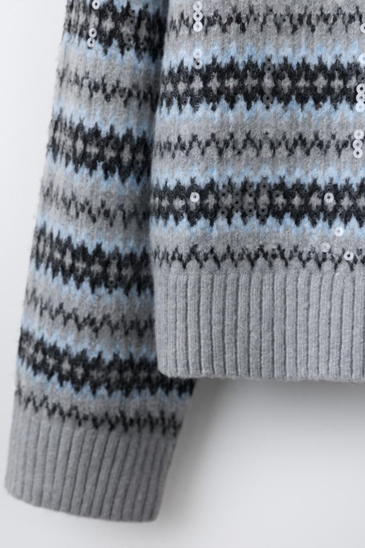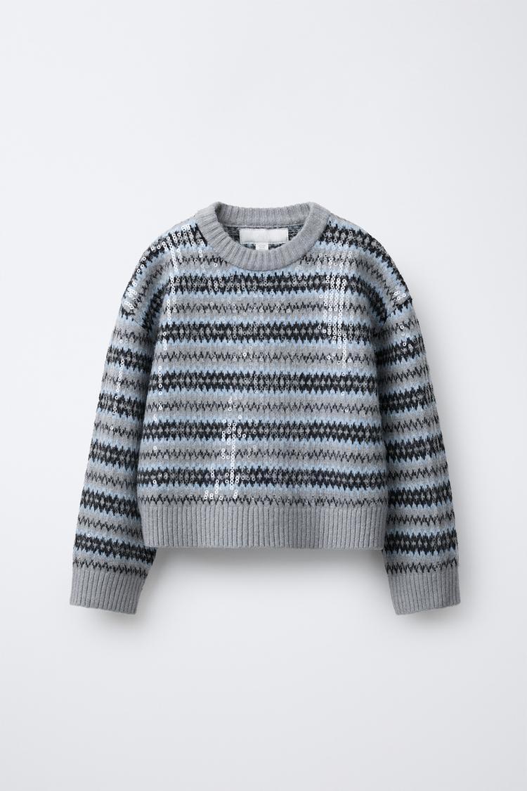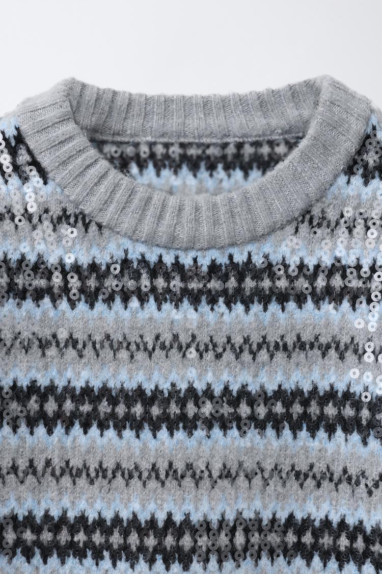 ZARA ЖАККАРДОВЫЙ СВИТЕР С ПАЙЕТКАМИ, ПОЛОСКИ