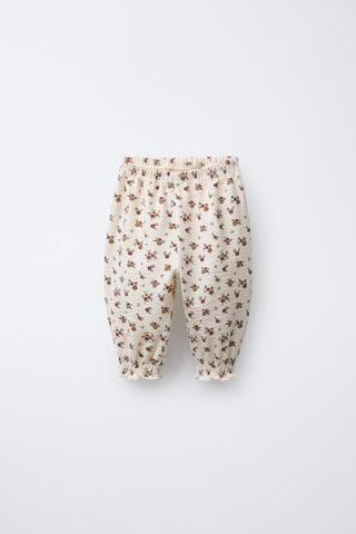 ZARA ЖАТЫЕ БРЮКИ В МЕЛКИЙ ЦВЕТОЧЕК, ЭКРЮ