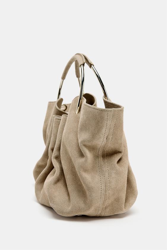 ZARA ЖЕСТКАЯ ЗАМШЕВАЯ СУМКА-МЕШОК, ПЕСОЧНЫЙ/КОРИЧНЕВЫЙ