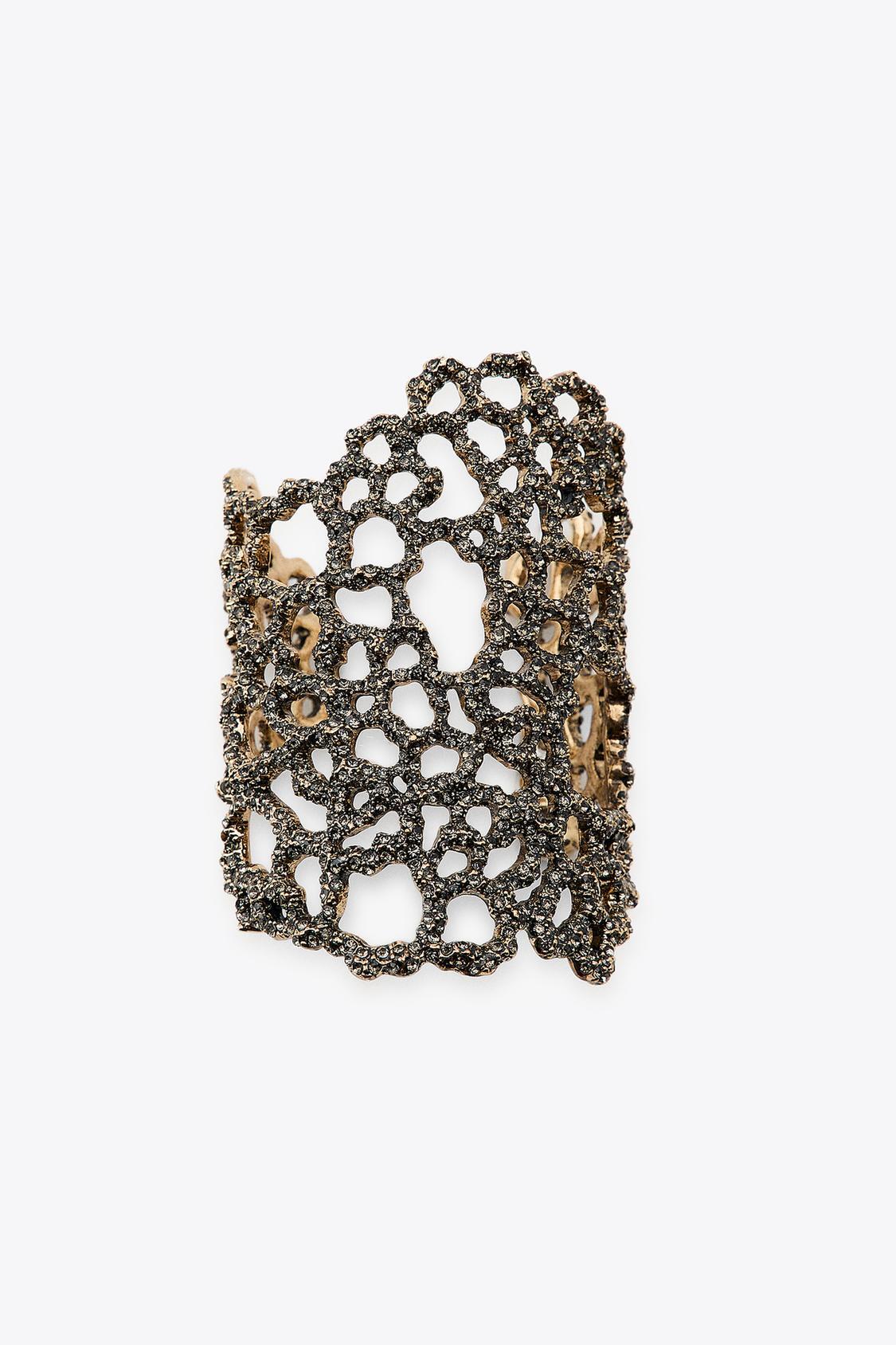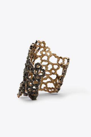 ZARA ЖЕСТКИЙ БРАСЛЕТ С ДРАГОЦЕННЫМИ КАМНЯМИ, ЦВЕТ СОСТАРЕННОГО ЗОЛОТА