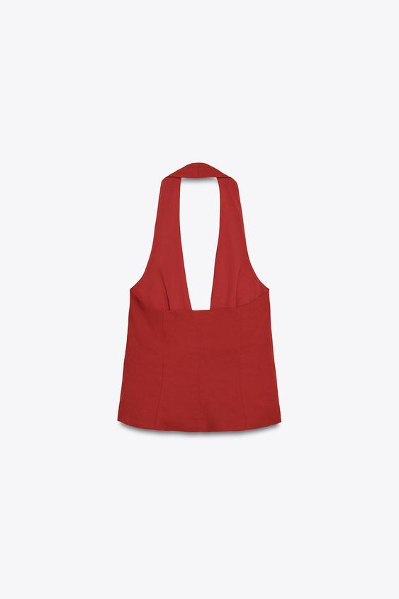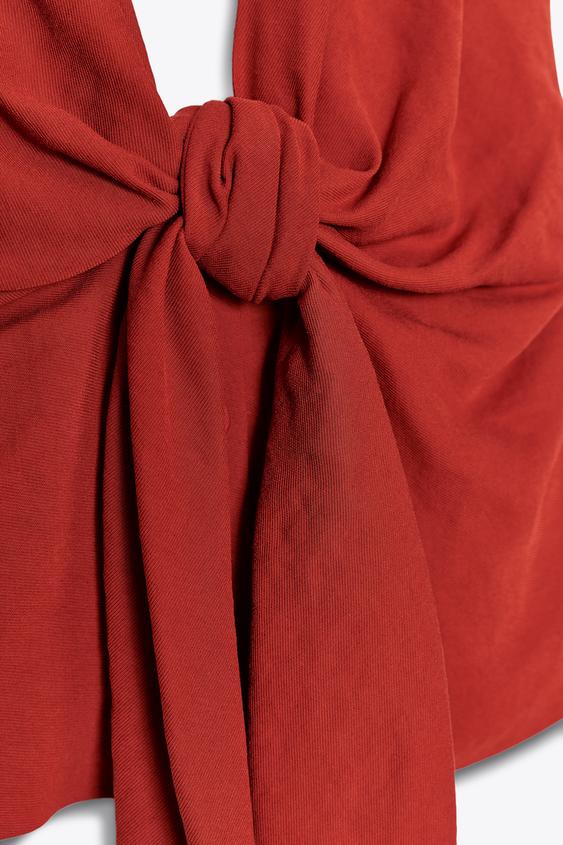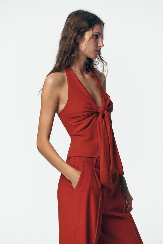 ZARA ЖИЛЕТ-ХАЛТЕР С УЗЛОМ, ЧЕРЕПИЧНЫЙ