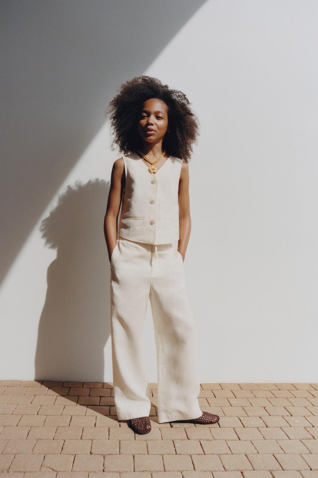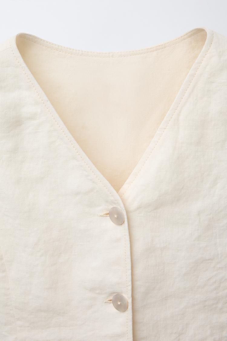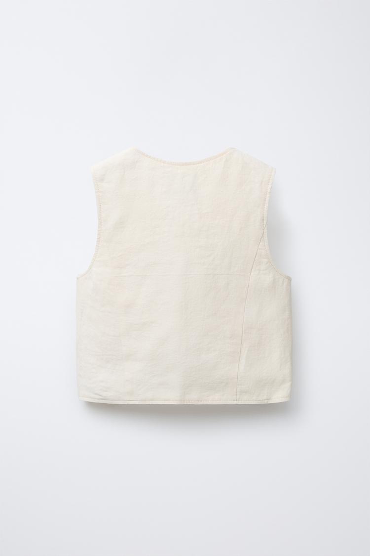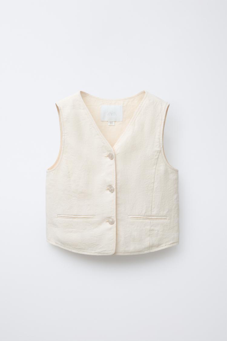 ZARA ЖИЛЕТ ИЗ 100% ЛЬНА, ЖЕЛТОВАТО-БЕЛЫЙ