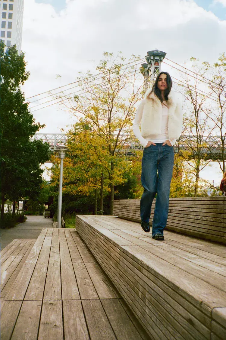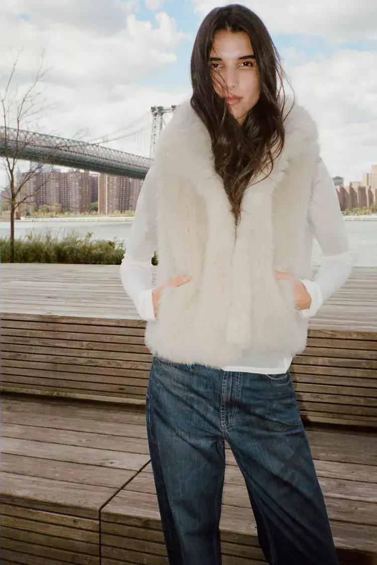 ZARA ЖИЛЕТ ИЗ ИСКУССТВЕННОГО МЕХА, СВЕТЛО-БЕЖЕВЫЙ