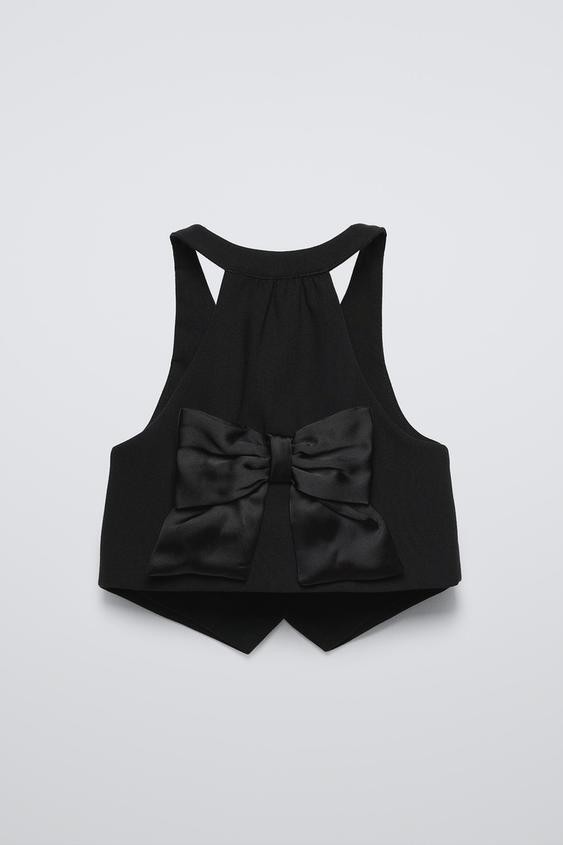 ZARA ЖИЛЕТ С БАНТОМ, ЧЕРНЫЙ