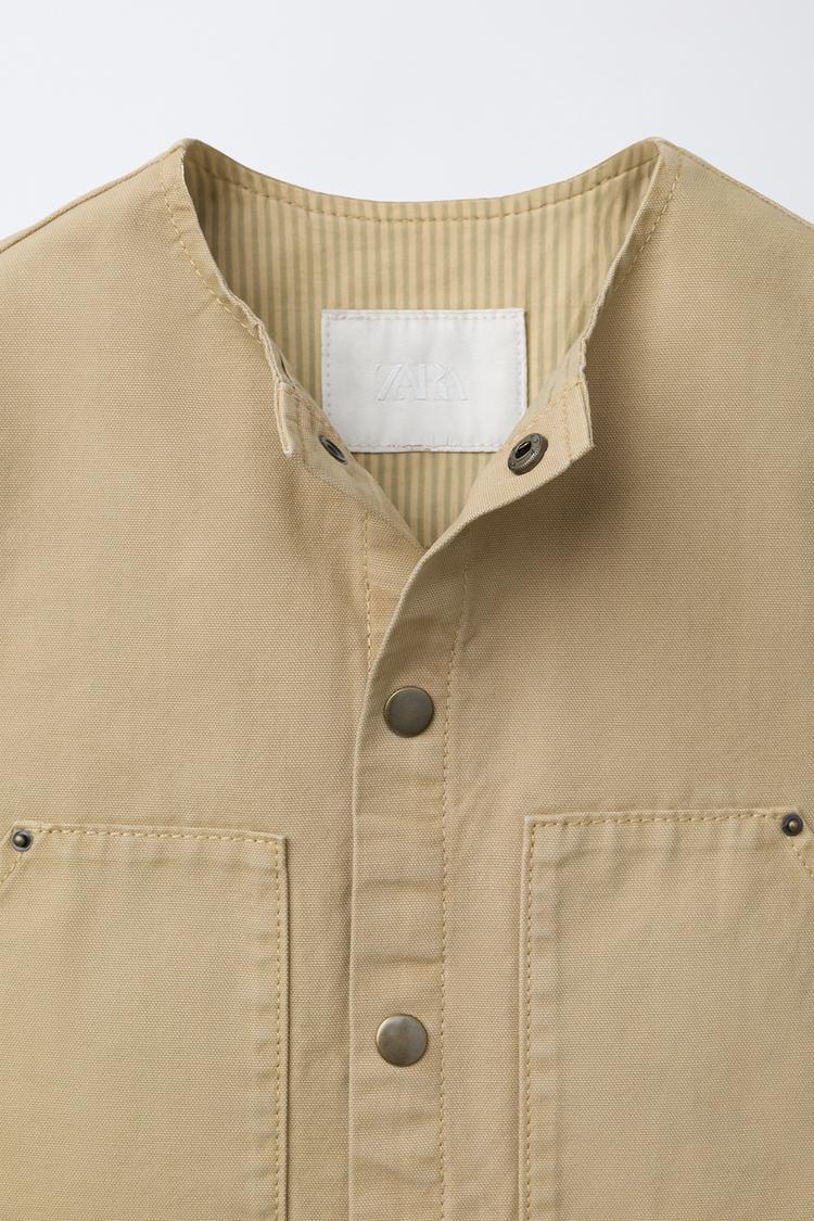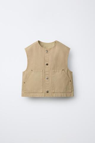 ZARA ЖИЛЕТ С НАШИВКОЙ, ПЕСОЧНЫЙ