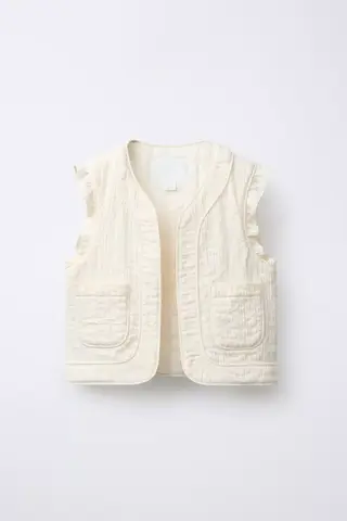 ZARA ЖИЛЕТ С ОБОРКАМИ, ЭКРЮ