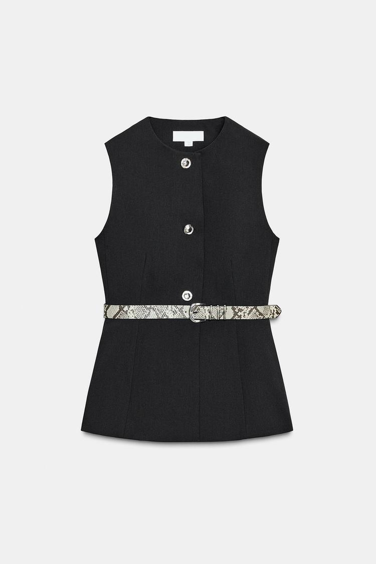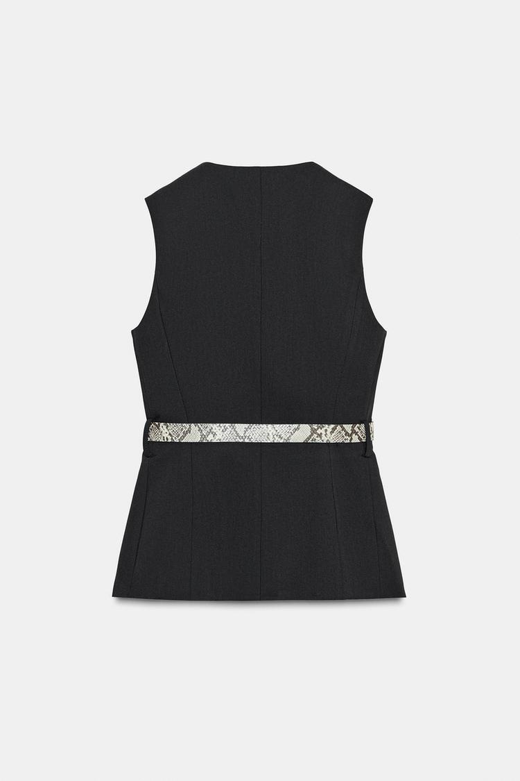 ZARA ЖИЛЕТ С ПОЯСОМ, ЧЕРНЫЙ