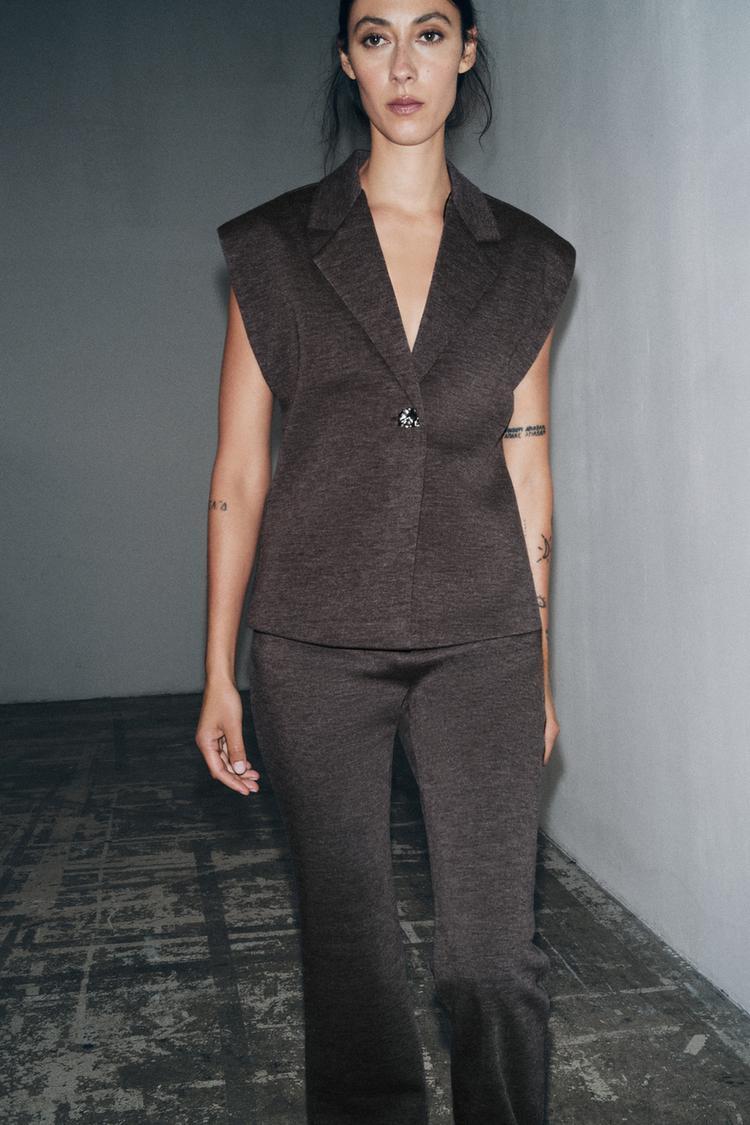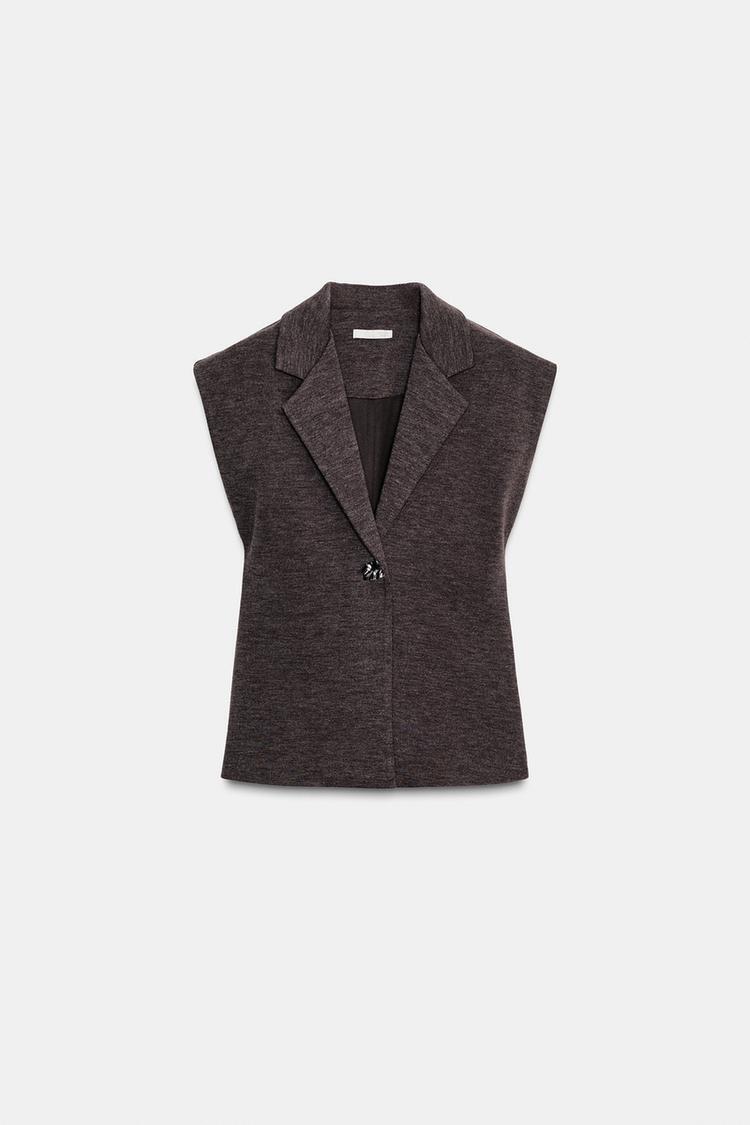 ZARA ЖИЛЕТ С ПУГОВИЦЕЙ, КОРИЧНЕВЫЙ МЕЛАНЖ