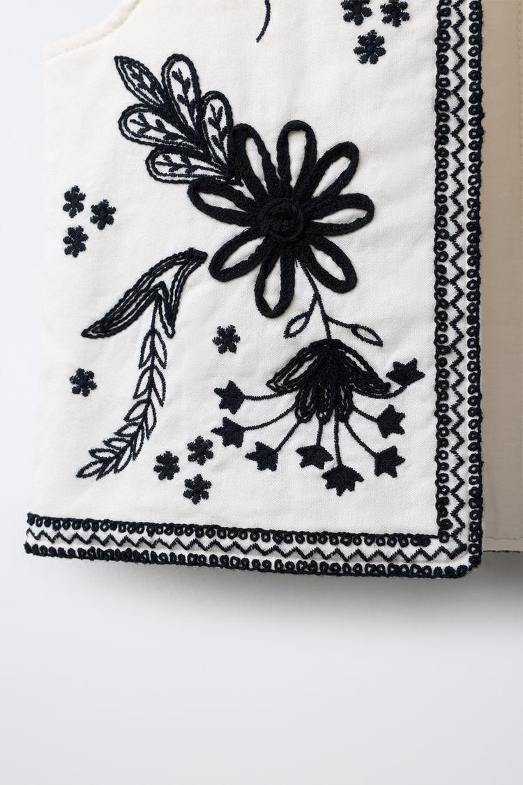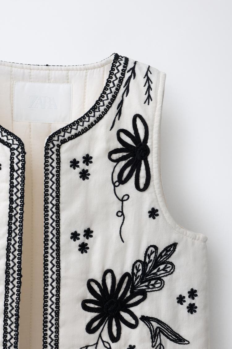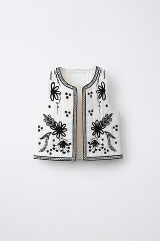 ZARA ЖИЛЕТ С ВЫШИВКОЙ, БЕЛЫЙ