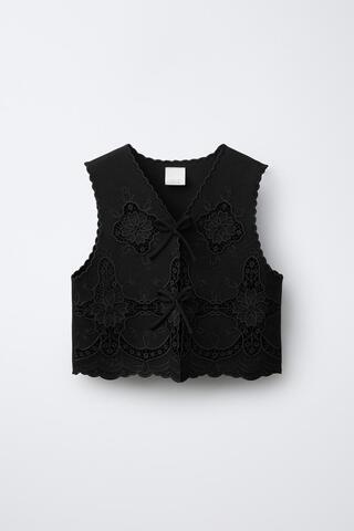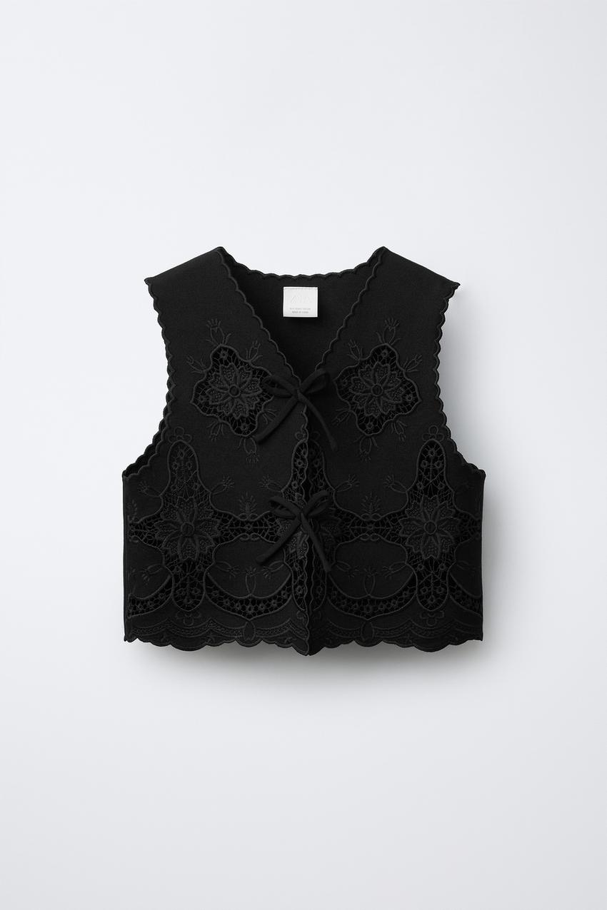 ZARA ЖИЛЕТ С ВЫШИВКОЙ, ЧЕРНЫЙ