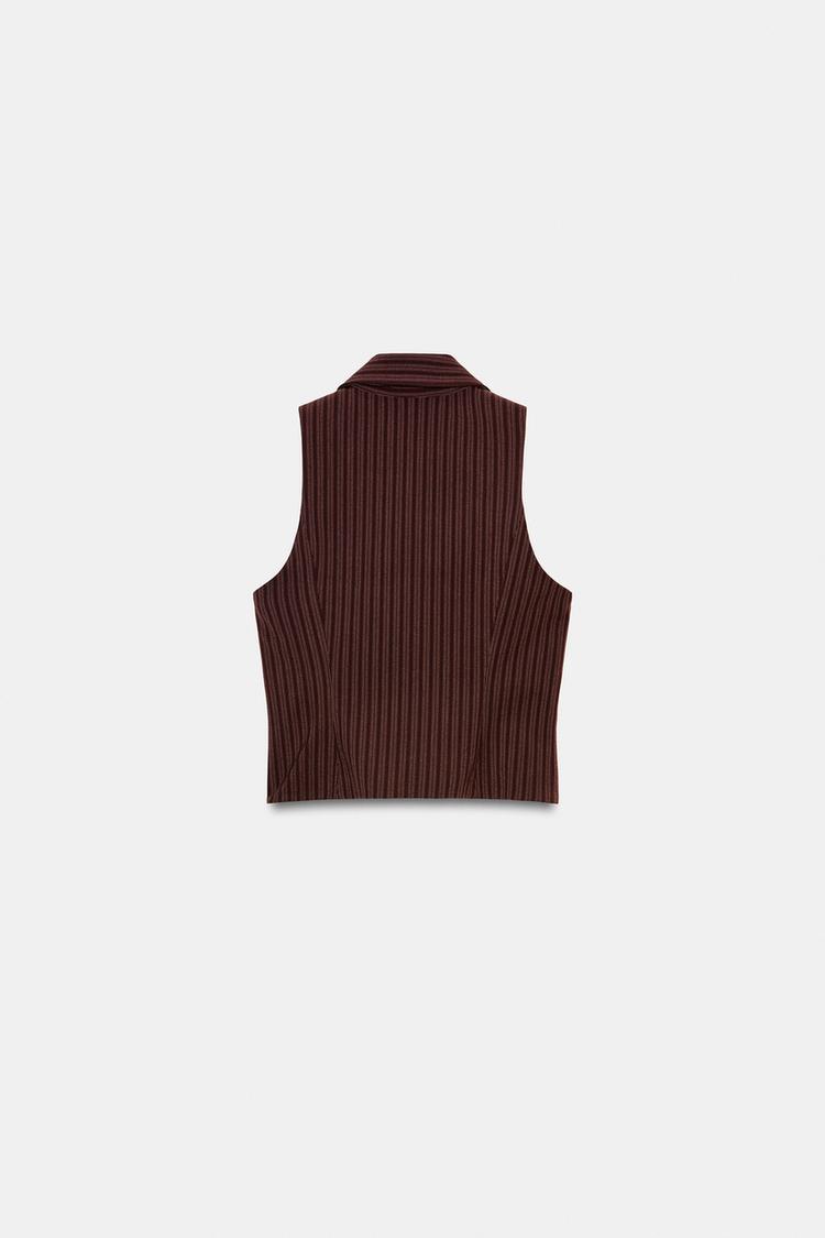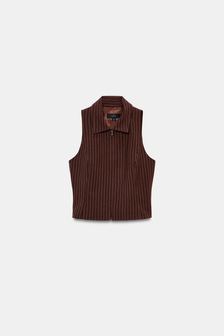ZARA ЖИЛЕТ В ПОЛОСКУ НА МОЛНИИ, КОРИЧНЕВЫЙ/ЭКРЮ